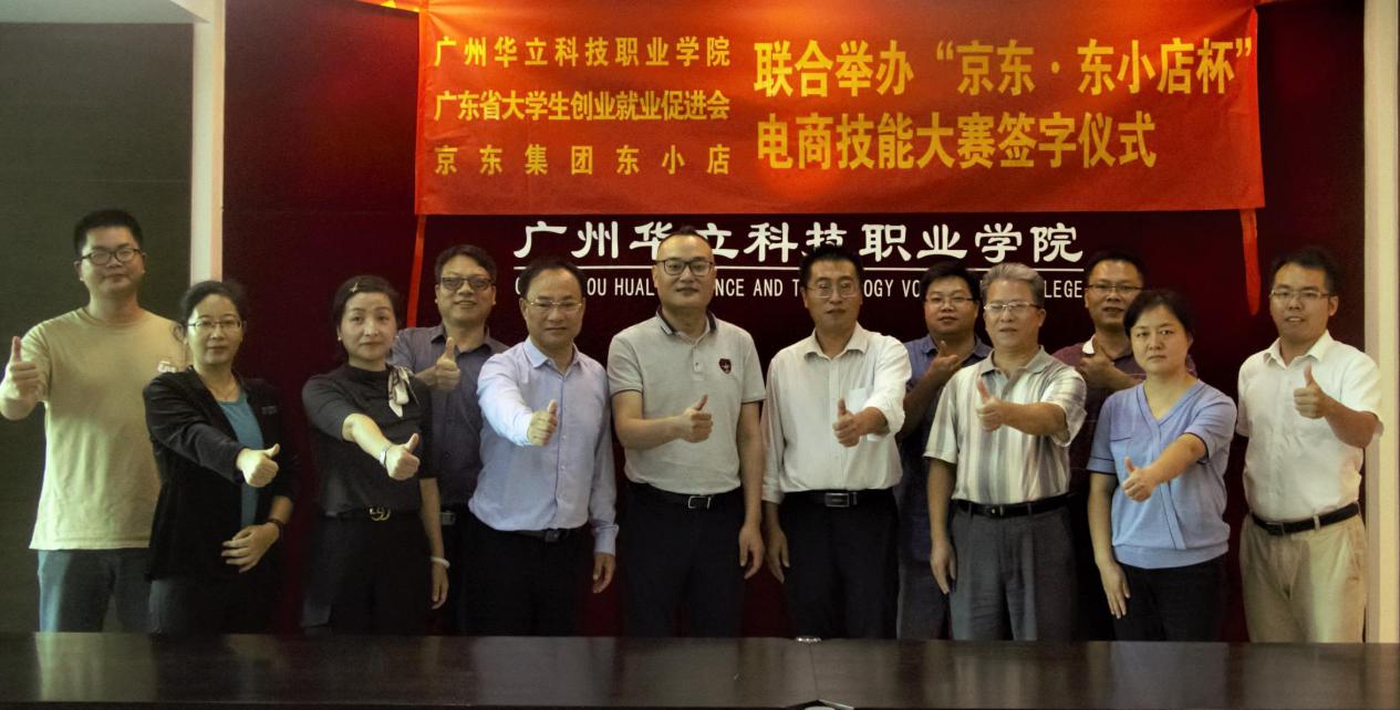 2020年10月11日下午,廣州華立科技職業(yè)學(xué)院舉行校企合作簽約儀式。廣東省大學(xué)生創(chuàng)業(yè)就業(yè)促進(jìn)會(huì)會(huì)長(zhǎng)蔣宗驍,京東集團(tuán)東小店精英店長(zhǎng)、廣州城市推廣大使鄂祝云;我校黨委副書記、副校長(zhǎng)高堯來,管理學(xué)院院長(zhǎng)溫偉勝、教務(wù)處副處長(zhǎng)何志宏、校企合作處負(fù)責(zé)人鐘文浩等參加簽約儀式。簽約儀式由我校校企合作處負(fù)責(zé)人鐘文浩主持。