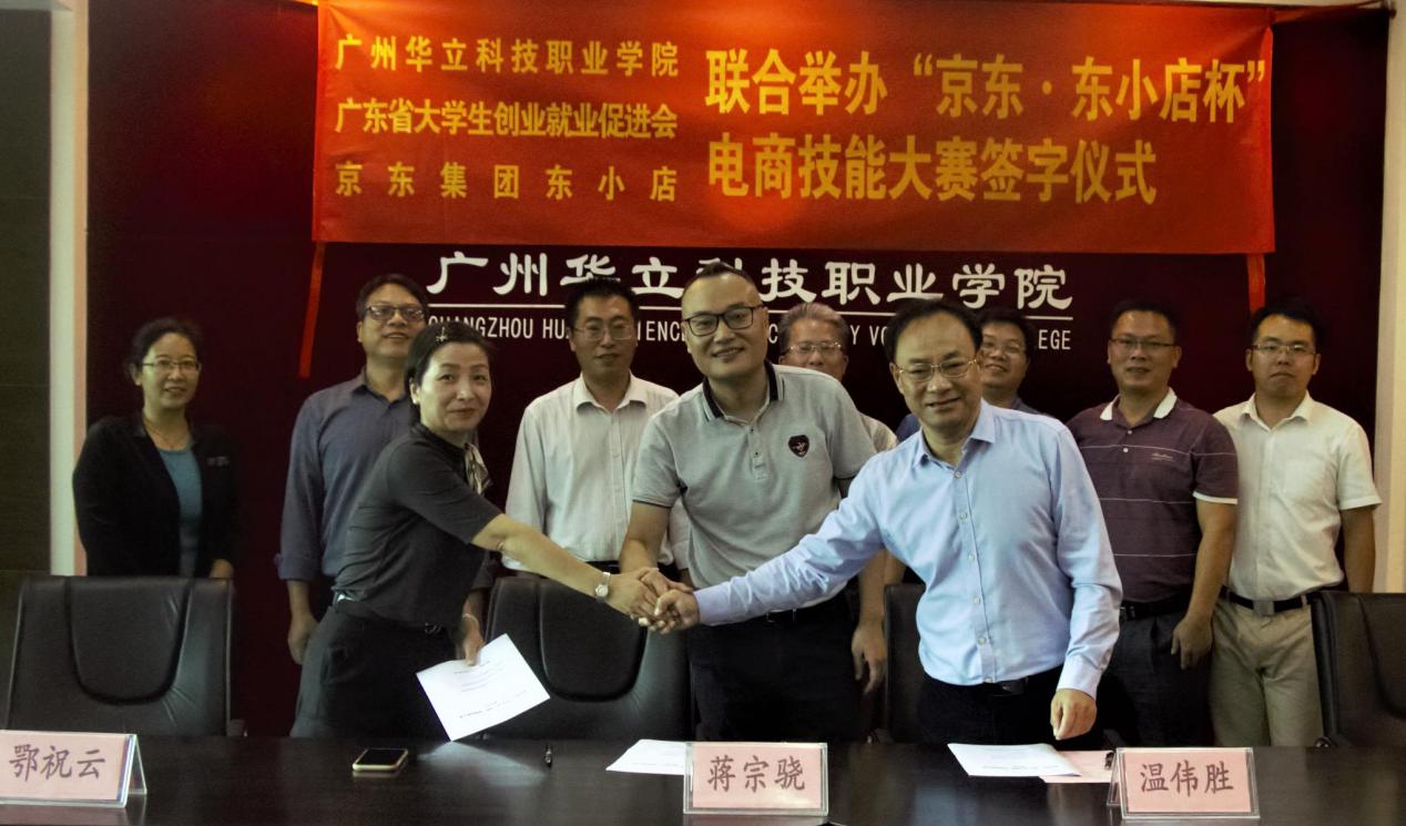 隨后,在熱烈的氣氛中,我校與京東集團(tuán)東小店簽訂了《大學(xué)生校外實(shí)踐教學(xué)基地協(xié)議書》,與廣東省大學(xué)生創(chuàng)業(yè)就業(yè)促進(jìn)會(huì)、京東集團(tuán)東小店簽訂了政校企三方聯(lián)合舉辦“京東·東小店杯”電商技能大賽協(xié)議書。