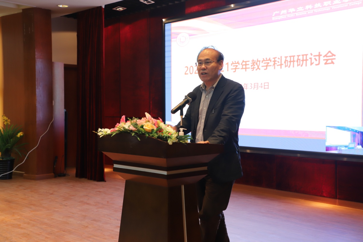 2021年是“十四五”開局之年、向第二個(gè)百年奮斗目標(biāo)進(jìn)軍的起步之年?!笆奈濉笔菑V州華立科技職業(yè)學(xué)院實(shí)現(xiàn)升本、譜寫新時(shí)代絢麗篇章的關(guān)鍵時(shí)期。站在新的歷史結(jié)點(diǎn),對(duì)影響學(xué)校長(zhǎng)期發(fā)展的全局性、關(guān)鍵性、深層次問(wèn)題開展深入研討;為此,學(xué)校3月4日下午在一號(hào)報(bào)告廳召開2020-2021學(xué)年教學(xué)與科研研討大會(huì)。校領(lǐng)導(dǎo)、副科以上干部、各專業(yè)系主任和專業(yè)帶頭人參加了大會(huì),云浮校區(qū)以視頻方式參會(huì)。大會(huì)由馬龍海執(zhí)行校長(zhǎng)主持,評(píng)建辦孫虎主任、計(jì)算機(jī)學(xué)院王建華院長(zhǎng)、會(huì)計(jì)學(xué)院李哲院長(zhǎng)、教務(wù)處何志宏副處長(zhǎng)和科研處李衛(wèi)國(guó)副處長(zhǎng)圍繞以“升本”為目標(biāo)從各專業(yè)不同角度做了精彩的專題發(fā)言,分享了各自研究所得。