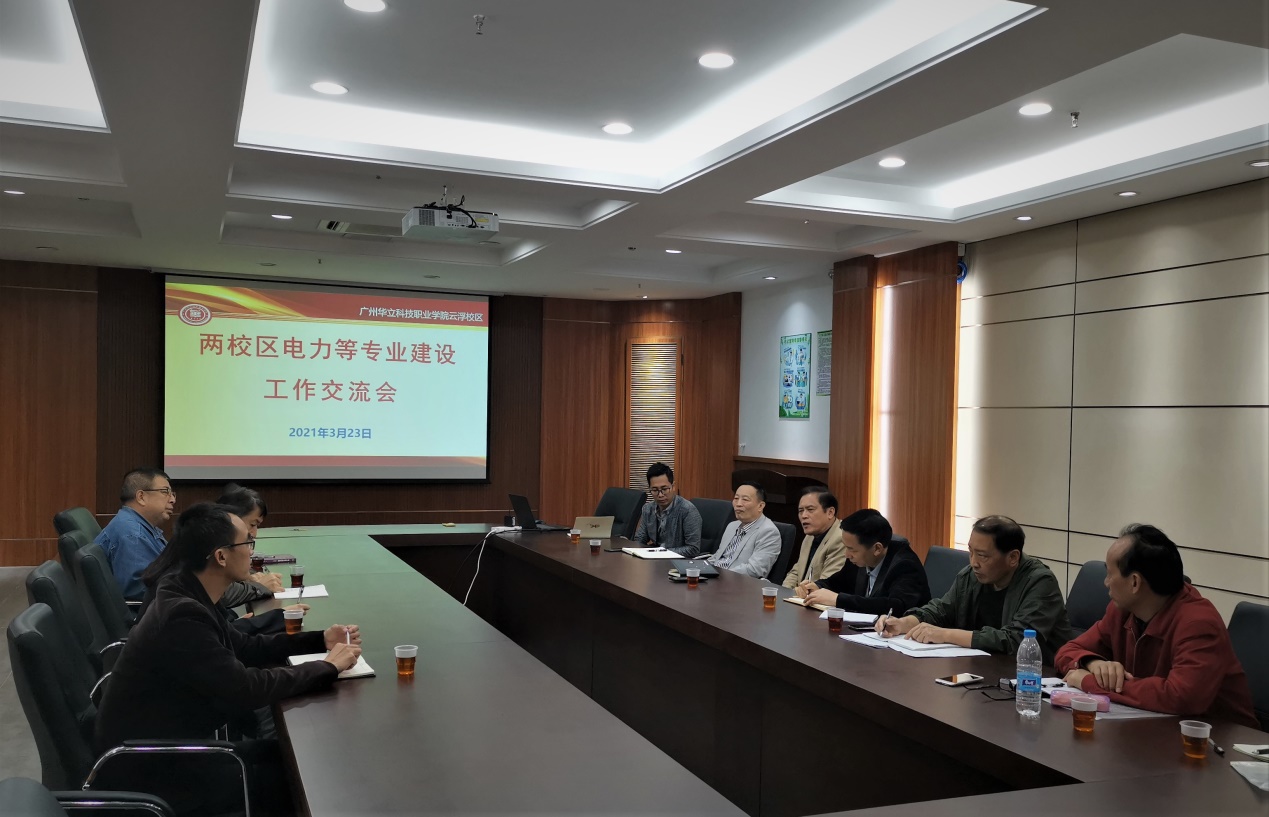 3月23日下午,我校廣州校區(qū)電力與智能制造學(xué)院院長(zhǎng)王秀敏一行4人到我校云浮校區(qū),重點(diǎn)就兩校區(qū)如何進(jìn)一步加強(qiáng)電力等專業(yè)建設(shè)相關(guān)工作開(kāi)展交流。副校長(zhǎng)黃樂(lè)覽,云浮校區(qū)教務(wù)處處長(zhǎng)胡仁火、黨政辦主任孟允煌,云浮校區(qū)機(jī)電系主任馬洪德及部分教師參加了座談交流。
