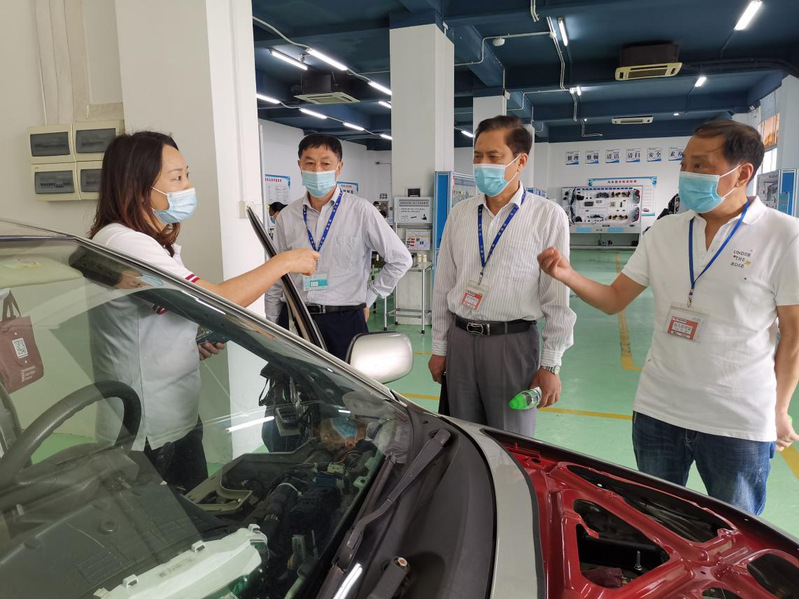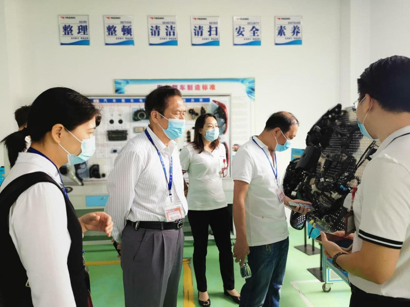 黃樂(lè)覽副校長(zhǎng)一行在肖燕課長(zhǎng)等的陪同下,先后參觀了該企業(yè)新能源汽車(chē)展館、生產(chǎn)車(chē)間,新員工及實(shí)習(xí)生培訓(xùn)室,員工業(yè)余學(xué)習(xí)區(qū)、娛樂(lè)區(qū)、宿舍和飯?zhí)玫取?/span>