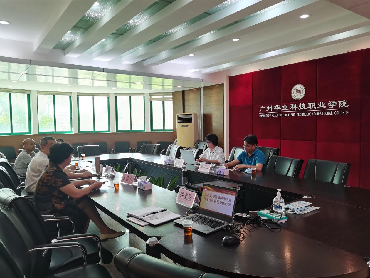 2021年4月22日下午,騰訊和迪樂普公司兩家知名企業(yè)一同來訪廣州華立科技職業(yè)學院進行校企合作洽談。騰訊智慧行業(yè)產(chǎn)品二部高級經(jīng)理李春梅、深圳迪樂普智能科技有限公司研發(fā)總監(jiān)劉林運,我校校長劉莊、教務(wù)處處長何志宏、校企合作與就業(yè)管理處負責人鐘文浩、計算機學院院長王建華、電力學院執(zhí)行院長王秀敏、藝傳學院校外副主任居振宇、計算機學院校外副主任蔡文欽等參加出席了會議。會議由我校校長劉莊主持。