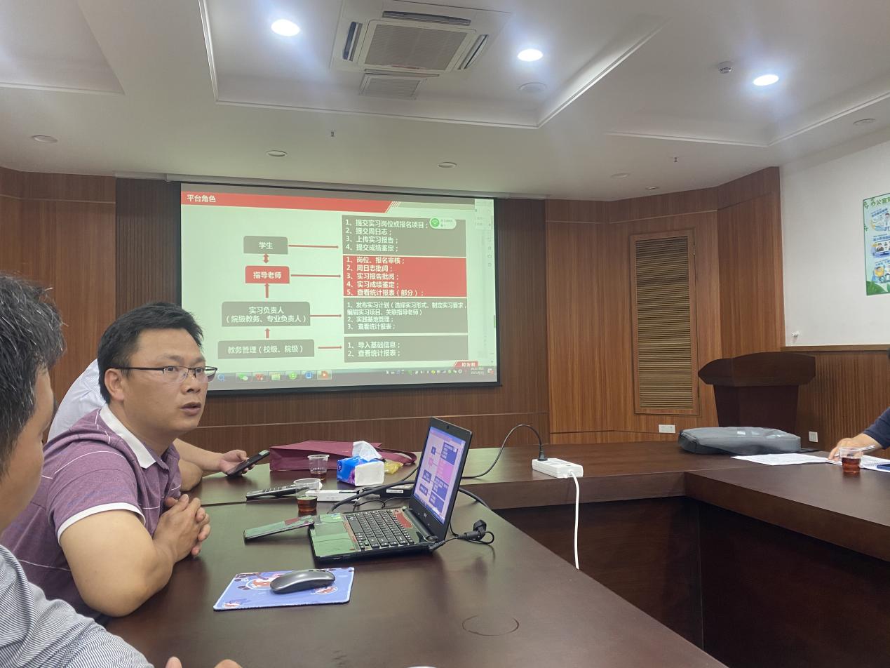 校外教學(xué)辦韋建林主任介紹了我?,F(xiàn)行使用的“校友邦”實習(xí)平臺操作系統(tǒng),并從實習(xí)計劃的制定、實習(xí)崗位報名審核、周月志批閱、實習(xí)報告批閱、實習(xí)成績鑒定等方面作了詳細(xì)的操作說明。