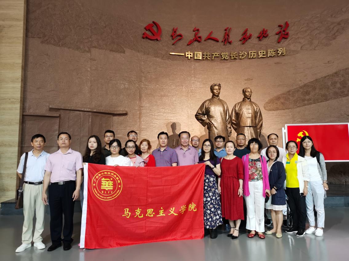 在喜迎中國共產黨百年華誕之際,為了全面貫徹落實習近平總書記在黨史學習教育動員大會上的講話精神,更好的將黨史學習教育融入思政課教育教學,5月15日至16日,廣州華立科技職業(yè)學院馬克思主義學院組織全校思政課教師赴湖南理工學院開展教學交流,同時到長沙橘子洲頭、清水塘中共湘區(qū)委員會舊址、岳麓書院等地進行了為期兩天的紅色文化+傳統(tǒng)文化教育為主題的社會實踐活動。學校黨委書記林偉健教授全程指導和參加。