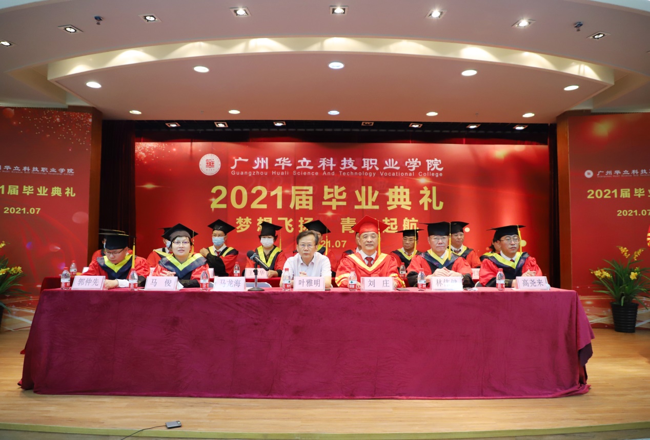 7月2日上午10點(diǎn),廣州華立科技職業(yè)學(xué)院隆重舉行以“夢(mèng)想飛揚(yáng) 青春起航”為主題的2021屆畢業(yè)生畢業(yè)典禮,3967名畢業(yè)生順利完成學(xué)業(yè),踏上新的人生征程。受疫情影響,學(xué)校通過(guò)線上線下的互動(dòng),廣州校區(qū)與云浮校區(qū)連線,讓身處各地的畢業(yè)生共同見證屬于2021屆畢業(yè)生的畢業(yè)盛典,讓青春不留遺憾!華立投資公司葉雅明總經(jīng)理,校長(zhǎng)劉莊,執(zhí)行校長(zhǎng)馬龍海,黨委書記林偉健,副校長(zhǎng)黃樂(lè)覽、馬俊、易健民、高堯來(lái),校長(zhǎng)助理王洪艷、郭仲先,各二級(jí)學(xué)院院長(zhǎng)、職能處室代表、各二級(jí)學(xué)院學(xué)管主任、黨支部書記、畢業(yè)班輔導(dǎo)員和相關(guān)工作人員以及2021屆畢業(yè)生代表出席了畢業(yè)典禮,其余畢業(yè)生通過(guò)收看直播并開展線上互動(dòng)的方式參加了云上畢業(yè)典禮。畢業(yè)典禮由執(zhí)行校長(zhǎng)馬龍海主持。