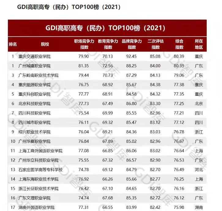 由教務處和科研處聯(lián)合提交的《通識教育視域下民辦高???/span>-產(chǎn)-教融合育人模式研究》是我校近年來開展的教育科學研究的高質(zhì)量成果。成績的取得為我校在全省乃至全國提高了聲譽,增強了品牌影響力。我校2020年“創(chuàng)強”考核得分創(chuàng)歷史新高,省教育廳公布“創(chuàng)新強校工程”考核結(jié)果顯示,我校2020年“創(chuàng)強”考核得分62.6分,較2019年考核提高近13分,創(chuàng)歷史新高,撥款增加22萬元。廣州日報GDI智庫全國高職高專(民辦)TOP100榜(2021)我校排名第12名,比2020年進步5名。