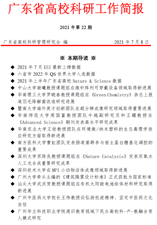 2021年7月8日,由廣東省高校科研管理究會代表教育廳科研處發(fā)布的《廣東省高??蒲泄ぷ骱唸蟆罚?/span>2021年第22期)重點報道了我???/span>-產(chǎn)-教融合育人研究成果,同專欄報道的我校是唯一的省內(nèi)高職院校。