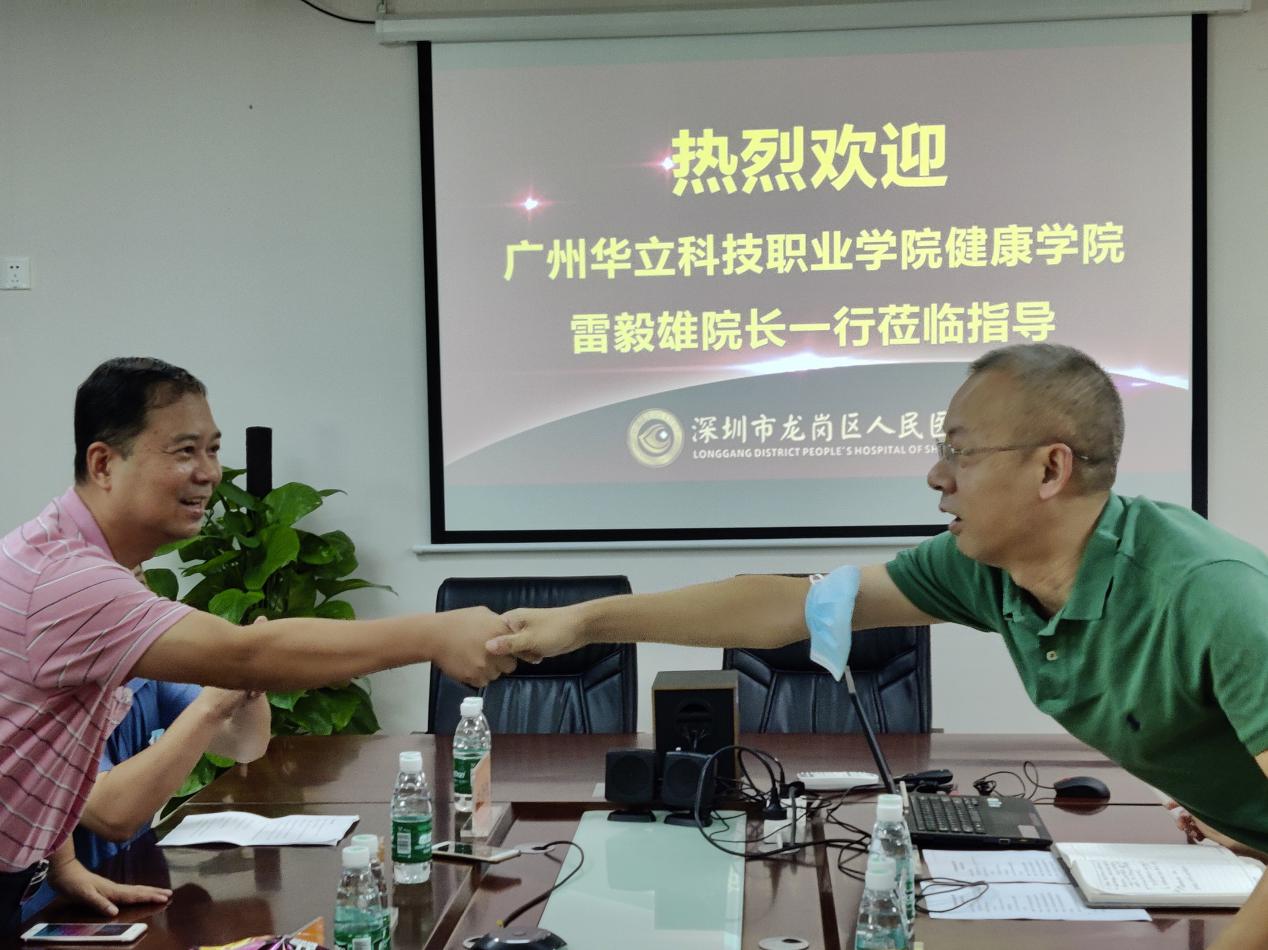 深圳龍崗區(qū)人民醫(yī)院馮景副院長對雷院長一行表示熱烈的歡迎。會上高度贊揚了本屆實習(xí)生,表示即使疫情期間需要每天加班也從不叫苦喊累、服從安排毫無怨言,學(xué)生綜合素養(yǎng)品質(zhì)非常高。