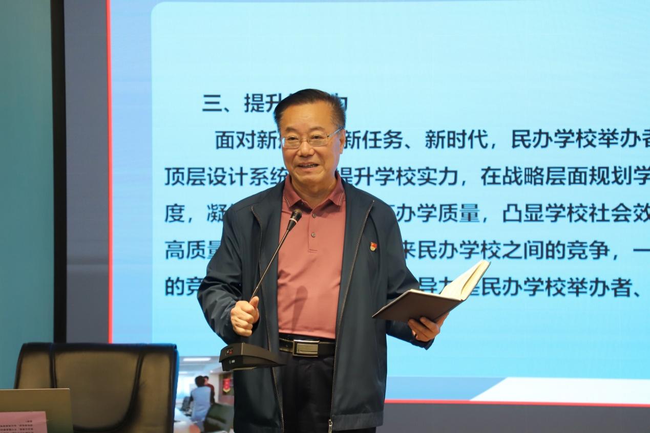 趙教授強(qiáng)調(diào),新法新政出臺(tái),我們要順應(yīng)新潮流、擁抱新時(shí)代、開(kāi)創(chuàng)新局面,準(zhǔn)確把握《實(shí)施條例》的政策法律導(dǎo)向,全面加強(qiáng)黨對(duì)民辦學(xué)校的領(lǐng)導(dǎo),堅(jiān)持民辦教育的公益性,鼓勵(lì)和支持非營(yíng)利辦學(xué),轉(zhuǎn)變觀念,提高認(rèn)識(shí),提高政治站位,要提升戰(zhàn)略判斷力和領(lǐng)導(dǎo)力,提高法制意識(shí),適應(yīng)新時(shí)代的發(fā)展,著力加強(qiáng)學(xué)校內(nèi)涵建設(shè),打造特色,大力促進(jìn)我省民辦教育事業(yè)健康高質(zhì)量發(fā)展。殷切希望教師們深刻認(rèn)識(shí)到職業(yè)教育的意義,要有培養(yǎng)學(xué)生 “德、智、體、美、勞”全面發(fā)展的教育情懷,為社會(huì)發(fā)展培養(yǎng)提供堅(jiān)實(shí)的人才支撐。