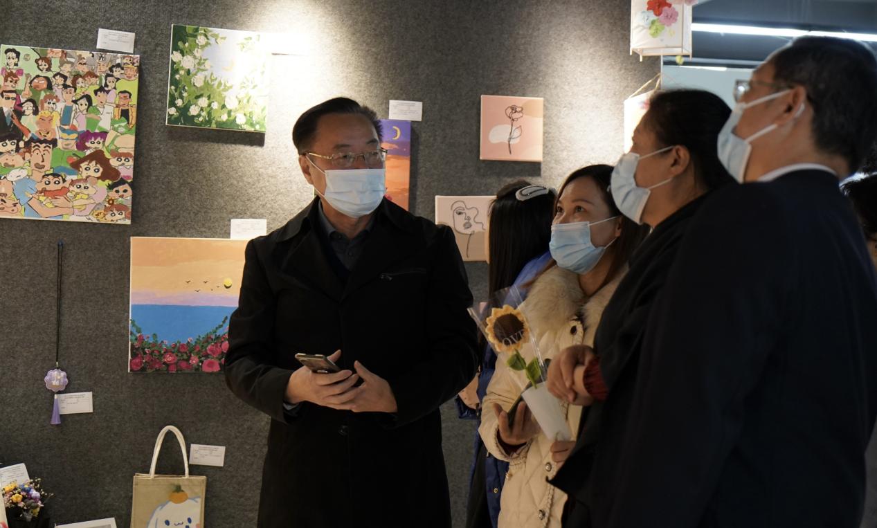 李于昆院長在講話中指出,本次展覽體現(xiàn)了師生共同參與的教學成果,是一個創(chuàng)新展,更是一種創(chuàng)新的教學模式,即將課堂的學習成果轉(zhuǎn)變?yōu)槭止ぷ髌愤M行展覽,創(chuàng)新性十足。他認為,本次展覽具有三大特色:一是內(nèi)容豐富,從慶祝建黨100周年的主題到現(xiàn)代藝術(shù)的各個方面都有所涉獵;二是形式多樣,從平面到立體,從手工工藝到綜合設計都有展現(xiàn);三是材料環(huán)保,利用一些廢棄物品,比如報紙、易拉罐等進行二次創(chuàng)造,體現(xiàn)了較強的環(huán)保生態(tài)意識。