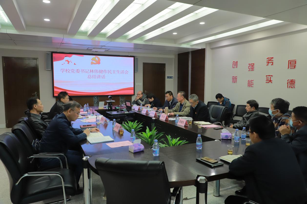 會(huì)上,黨委書記林偉健介紹了會(huì)前準(zhǔn)備情況,并代表學(xué)校領(lǐng)導(dǎo)班子作對(duì)照檢查,重點(diǎn)從5個(gè)方面查擺問題和不足,深刻剖析原因,明確下一步整改措施和努力方向。隨后作個(gè)人對(duì)照檢查,帶頭開展自我批評(píng),并接受班子成員批評(píng)。