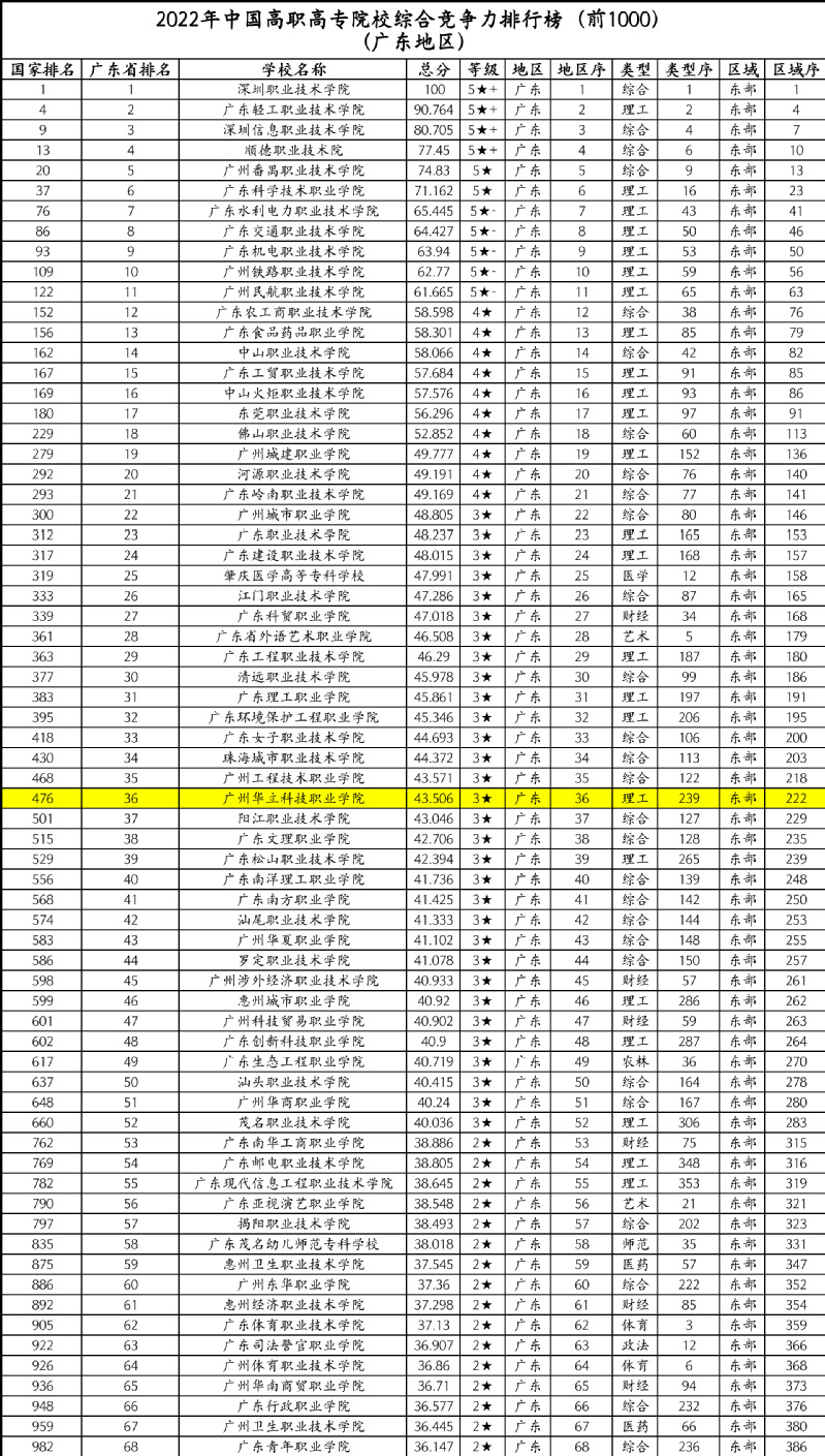 近日,在2022年“金平果排行榜”(中評(píng)榜)中國(guó)高職高專院校綜合競(jìng)爭(zhēng)力排行榜(1000強(qiáng))中,我校在全國(guó)1484所高職中排名476,廣東省第36,廣東民辦高職院校中排名第三,廣東省排名前三的另兩所高職高專院校分別是廣州城建職業(yè)學(xué)院(279名)、廣東嶺南學(xué)院(293)。其他民辦院校排名為廣州南洋理工職業(yè)學(xué)院(556)、廣州華夏職業(yè)學(xué)院(583)、廣州涉外經(jīng)濟(jì)職業(yè)技術(shù)學(xué)院(598)、廣州華商職業(yè)學(xué)院(648)。