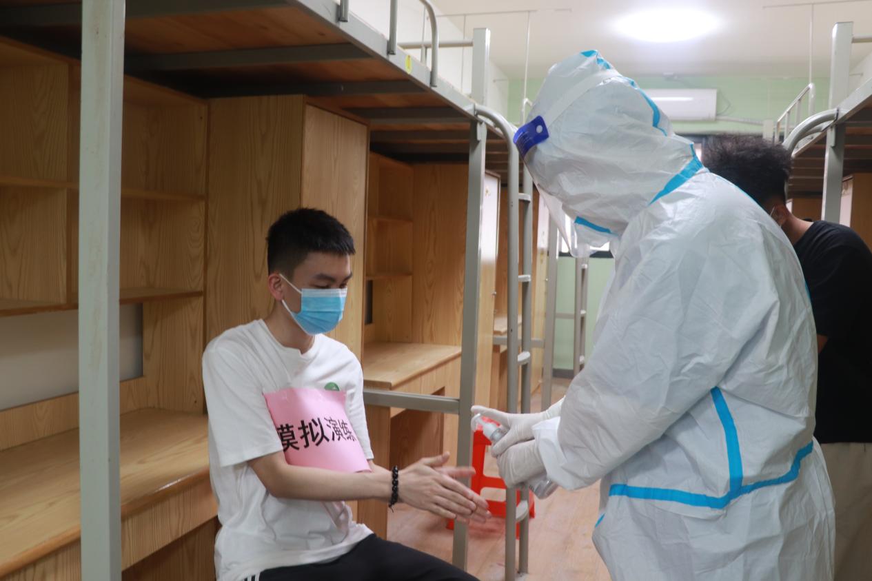 演練前,學(xué)校召開工作布置會,對各演練場所疫情防控工作人員作了周密部署;學(xué)生處兼保衛(wèi)處副處長蘇秦對演練腳本和處置流程再次作了具體闡述說明,確保了此次演練的各個環(huán)節(jié)銜接有序。