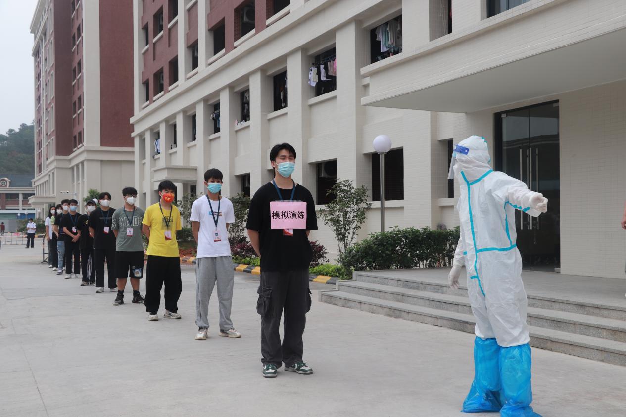 此次演練根據(jù)國家及屬地防疫政策及文件要求,按照《廣州華立科技職業(yè)學(xué)院云浮校區(qū)突發(fā)公共衛(wèi)生事件應(yīng)急預(yù)案》《云浮校區(qū)兩校疫情處置聯(lián)合演練方案》等有序開展。以校內(nèi)有疫情輸入性風(fēng)險為背景,開展了校園防疫封控、大規(guī)模核酸檢測等相關(guān)環(huán)節(jié)應(yīng)急處置演練。