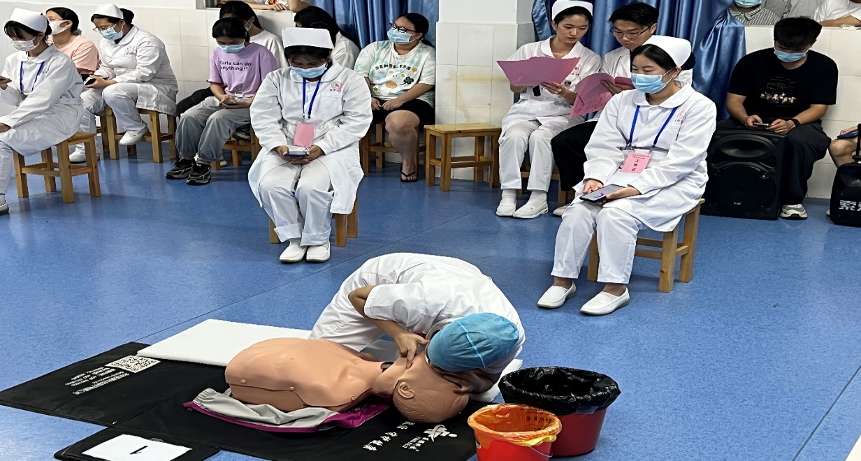 14名教師和107名學(xué)生參加了這次活動。學(xué)校督導(dǎo)辦副主任曾紀(jì)杰教授等督導(dǎo)親臨現(xiàn)場指導(dǎo)。經(jīng)過5月11日“單人徒手心肺復(fù)蘇術(shù)”項目比賽和5月12日“無菌技術(shù)操作”項目比賽,本次活動圓滿落下帷幕。