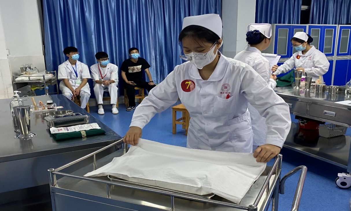 5月12日舉辦的“無菌技術(shù)操作”項目,現(xiàn)場氣氛活躍,參賽選手們用所學(xué)知識及嫻熟的技能,出色的完成了本次比賽。各位評委老師們秉承公正、公平、嚴(yán)謹?shù)脑瓌t,認真評比,最終選評出一等獎5名、二等獎10名、三等獎16名。