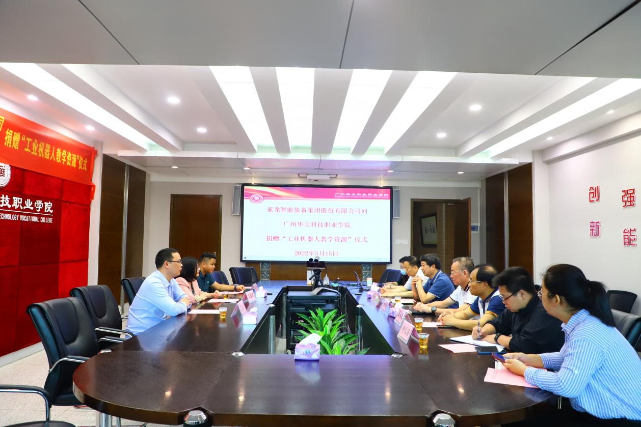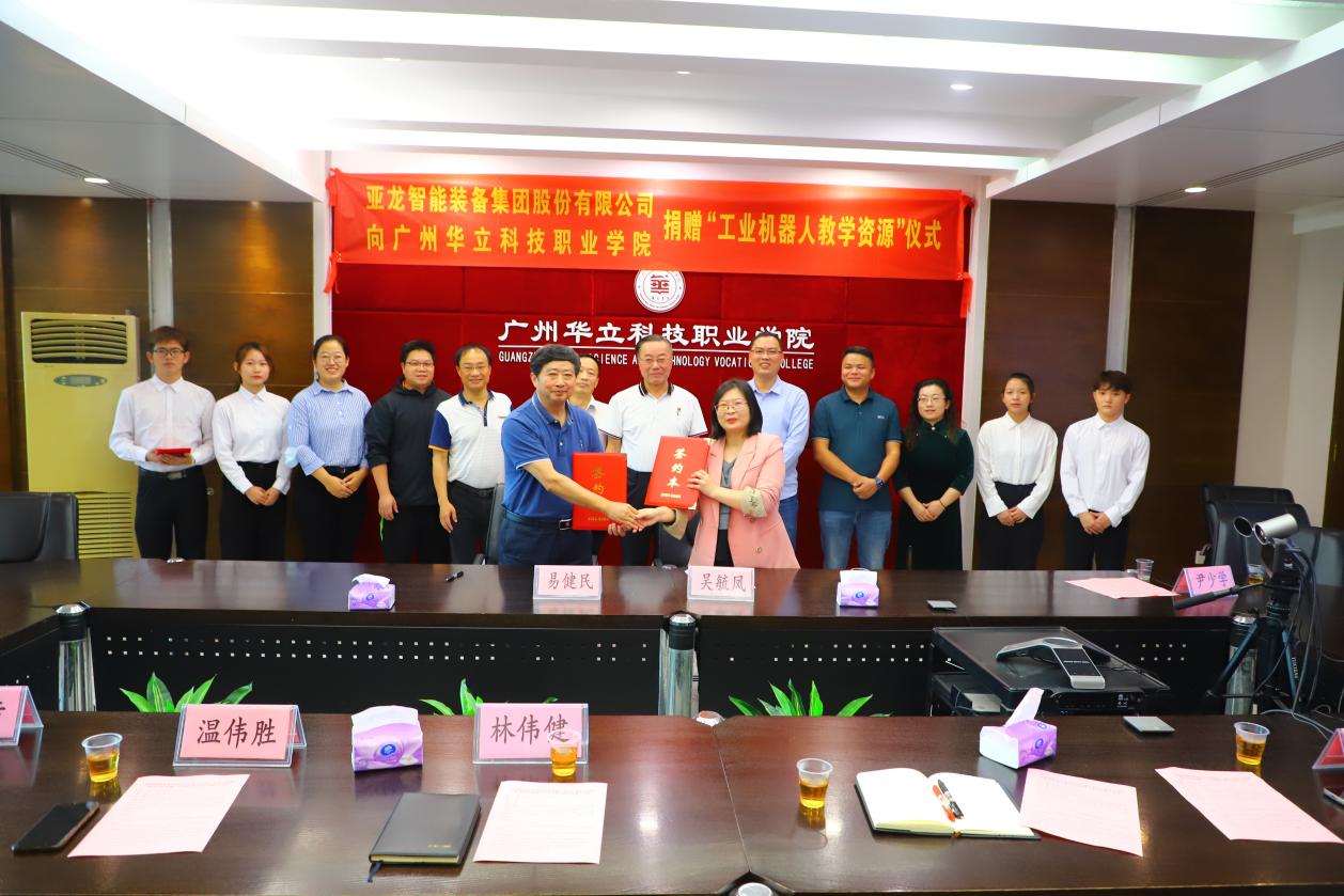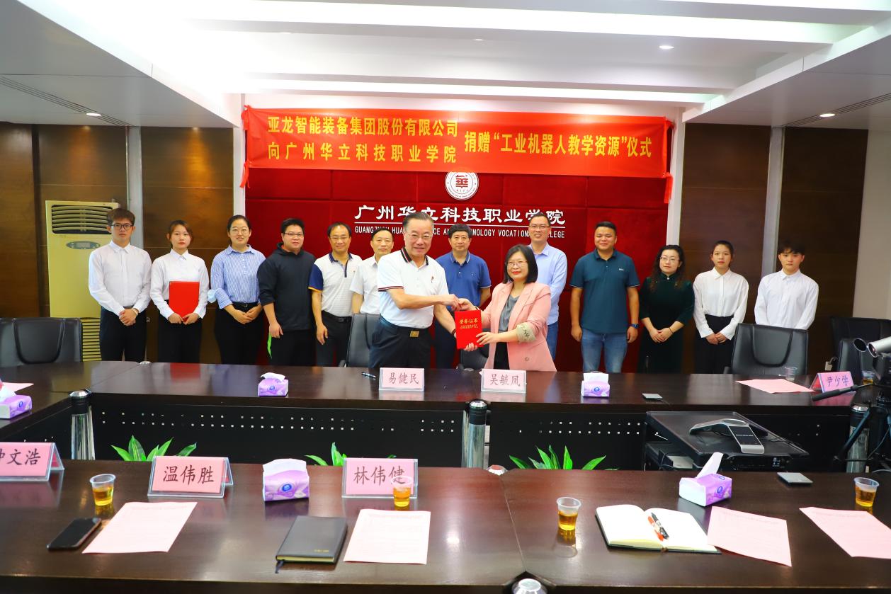 亞龍智能裝備集團股份有限公司向廣州華立科技職業(yè)學院捐贈“工業(yè)機器人教學資源”儀式