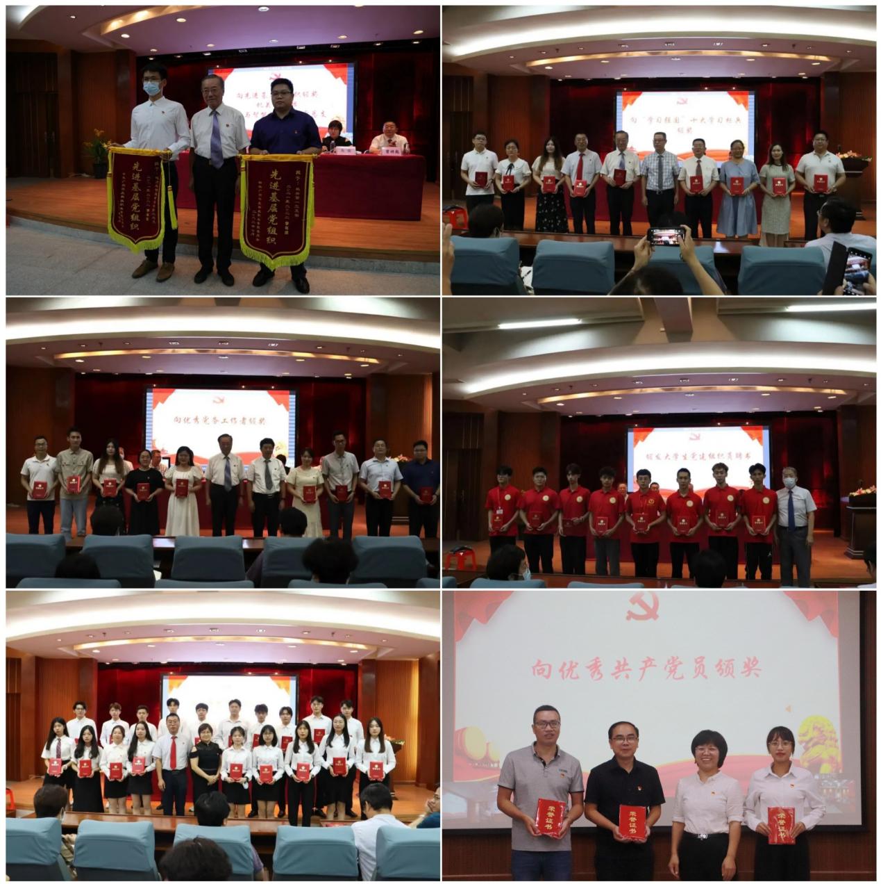學校領導為受表彰的先進基層黨組織和個人頒獎,為學生黨建組織員頒發(fā)聘書。