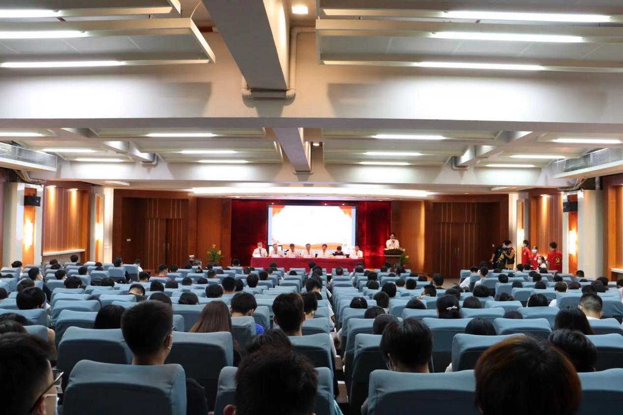 學校黨委書記林偉健教授出席會議并講話,學校黨委副書記、副校長高堯來同志主持會議。學校黨委委員、校領導、全校師生黨員、學生黨建組織員參會。云浮校區(qū)教師黨員和學生黨員代表以線上形式參加表彰大會。