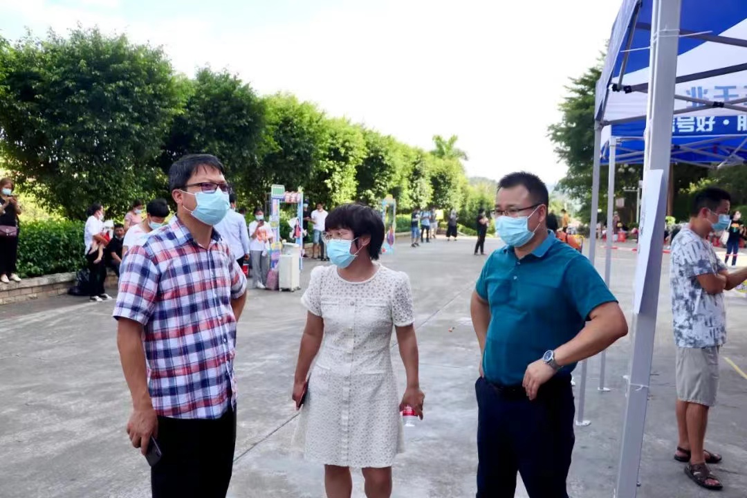 迎新當(dāng)天,學(xué)校領(lǐng)導(dǎo)率隊檢查迎新工作,關(guān)心了解新生的入校報到情況,耐心解答家長對疫情防控和校園管理的提問,并慰問迎新工作人員和師生志愿者。