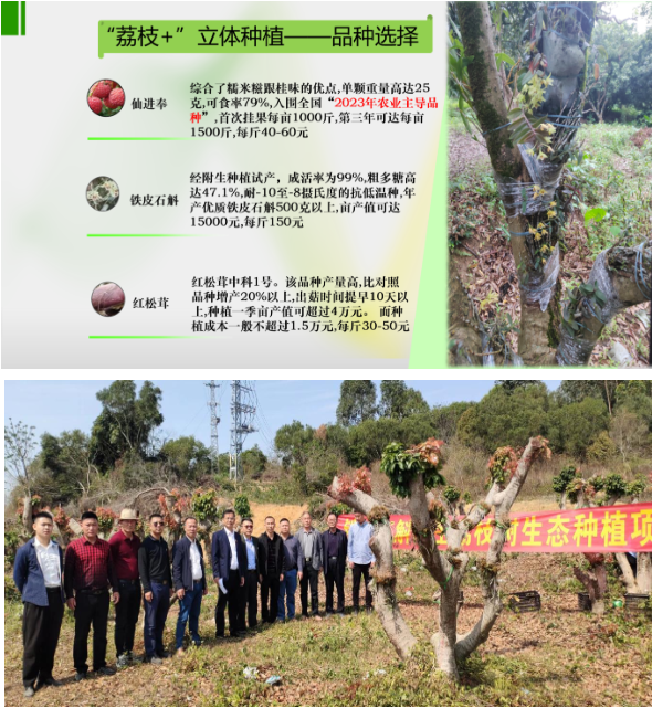 我校此次獲獎(jiǎng)案例為《荔枝+立體種植模式賦能鄉(xiāng)村振興》。2021年9月,《荔枝樹上種石斛》被廣東省科技廳立項(xiàng)為廣東省駐鎮(zhèn)幫鎮(zhèn)扶村農(nóng)村科技特派員項(xiàng)目,資助經(jīng)費(fèi)30萬元,團(tuán)隊(duì)已在汕尾陸豐市推進(jìn)示范基地建設(shè)200余畝,學(xué)校所在地增城區(qū)白面石村、增城馬屋村、瓜嶺村等建立了多個(gè)推廣基地。項(xiàng)目已進(jìn)一步拓展成荔枝樹上種石斛、樹下種松茸、荔枝品種改良的立體經(jīng)濟(jì)模式。學(xué)校鄉(xiāng)村振興工作獲廣東省科學(xué)技術(shù)廳以《石斛花開荔枝園,鄉(xiāng)村振興展風(fēng)采》在學(xué)習(xí)強(qiáng)國平臺(tái)上報(bào)道,2022年人民日?qǐng)?bào)和廣州日?qǐng)?bào)分別以《科技特派員團(tuán)隊(duì)助力革命老區(qū)白面石村鄉(xiāng)村振興工作》《圍觀!荔枝樹上種了名貴藥材》為題重點(diǎn)報(bào)道了我校鄉(xiāng)村振興新模式?!惰F皮石斛花開荔枝果園,職業(yè)教育助力鄉(xiāng)村振興》入選中國職業(yè)技術(shù)教育學(xué)會(huì)《鄉(xiāng)村振興中國職教在行動(dòng)——職業(yè)教育服務(wù)鄉(xiāng)村振興典型案例》受到魯昕會(huì)長的充分肯定和專題推介。