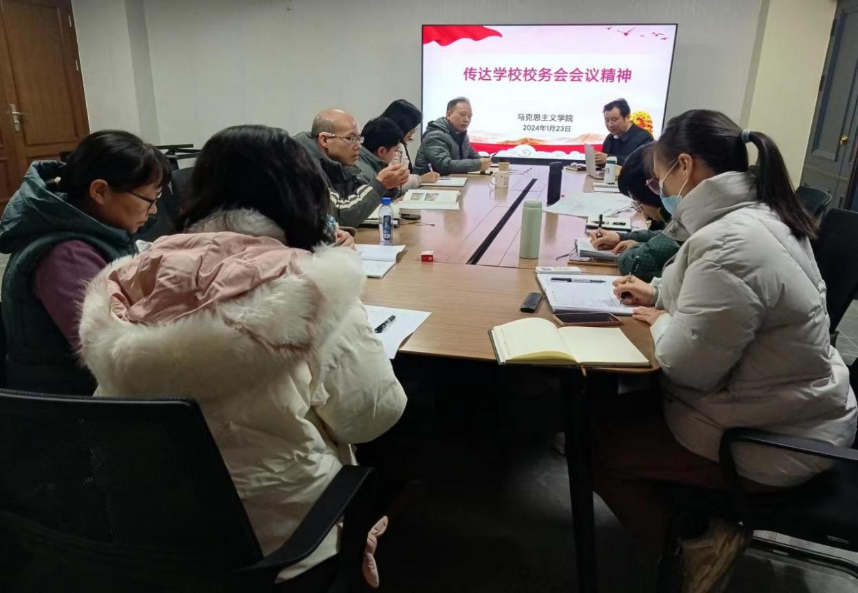在傳達完學(xué)校校務(wù)會精神后,廖院長對馬克思主義學(xué)院期末的辦公室搬遷、學(xué)生成績錄入、資料歸檔、學(xué)院安全保衛(wèi)等工作提出了要求。他充分肯定辦公室搬遷工程的順利完成,同時對學(xué)院新聞稿的撰寫、修改、終審等環(huán)節(jié)進行了安排、優(yōu)化和調(diào)整,并詳細闡述了學(xué)院2024年上半年的工作規(guī)劃,重點強調(diào)了兩項任務(wù),一是相關(guān)老師要利用假期做好參加全校公共基礎(chǔ)課教學(xué)能力比賽的準(zhǔn)備工作,二是全體老師要做好3月份即將舉辦的“紀(jì)念習(xí)近平總書記3·18講話五周年座談會”的工作。最后,他提醒大家注意假期安全,并提前祝愿大家度過一個愉快的假期。