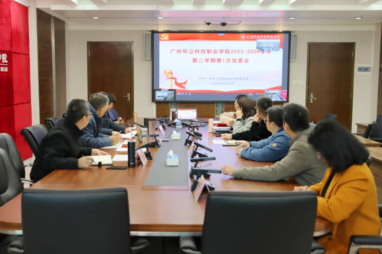 新學期開學伊始,2月26日上午,廣州華立科技職業(yè)學院召開了本學期第一次黨委會,第一議題組織學習習近平總書記新質生產力理論。黨委書記陳良聲主持并領學,黨委副書記、校長陳德清談學習體會,其他同志作研討發(fā)言。學校領導、黨委委員、黨委辦公室、學校辦公室、黨委組織部、黨委教師工作部、黨委學生工作部、教務處等負責人參加學習,云浮校區(qū)和正在國外進修的校領導通過視頻連線參加。