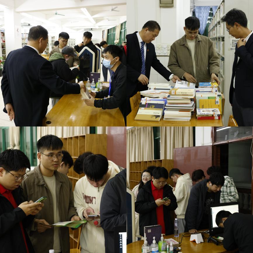 活動(dòng)結(jié)束后參會(huì)的領(lǐng)導(dǎo)和輔導(dǎo)員,與同學(xué)們一起走進(jìn)圖書(shū)館。
