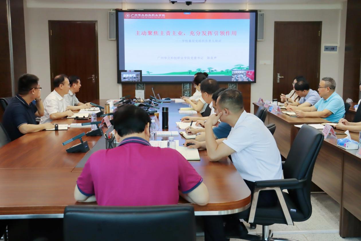 廣州華立科技職業(yè)學(xué)院于3月底順利完成了全校基層黨組織的換屆工作,為了進(jìn)一步加強(qiáng)基層黨組織建設(shè),提升新一屆基層黨組織負(fù)責(zé)人的政治能力和黨務(wù)水平,4月17日上午,學(xué)校黨委書記陳良聲與全校新一屆基層黨組織負(fù)責(zé)人開展集體談話,并作了題為《主動(dòng)聚焦主責(zé)主業(yè),充分發(fā)揮引領(lǐng)作用》的業(yè)務(wù)培訓(xùn)報(bào)告,云浮校區(qū)以連線方式參加,黨委委員、組織部部長劉宇赤同志主持集體談話活動(dòng)和培訓(xùn)會議。