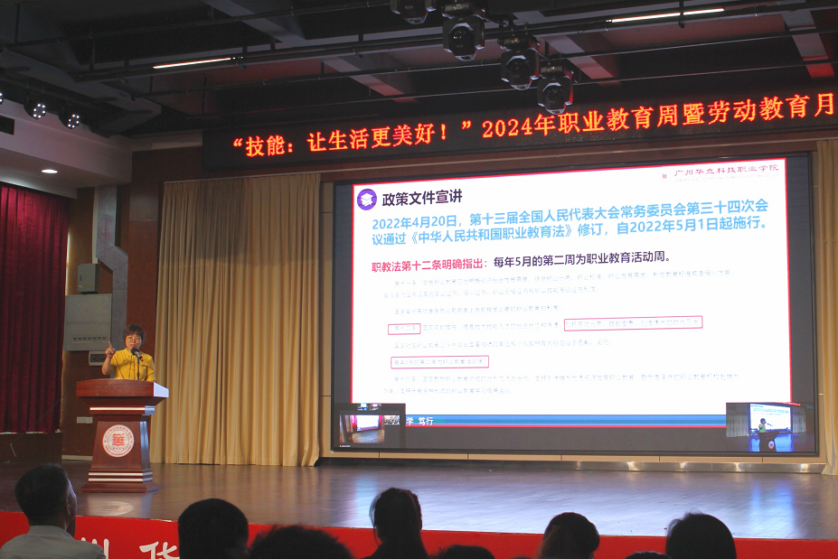 為深入學(xué)習(xí)貫徹習(xí)近平新時(shí)代中國(guó)特色社會(huì)主義思想,用實(shí)際行動(dòng)踐行黨的二十大精神和習(xí)近平總書記關(guān)于職業(yè)教育的重要指示批示精神,大力弘揚(yáng)“勞動(dòng)光榮、技能寶貴、創(chuàng)造偉大”的時(shí)代風(fēng)尚,充分展示我校的職業(yè)教育水平,5月8日我校廣州、云浮兩校區(qū)連線同步舉辦了2024年職業(yè)教育周暨勞動(dòng)教育月動(dòng)員大會(huì)。活動(dòng)主題為:“技能:讓生活更美好”。