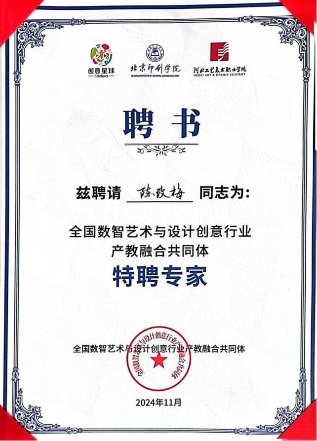 此次加入全國(guó)數(shù)智藝術(shù)與設(shè)計(jì)創(chuàng)意行業(yè)產(chǎn)教融合共同體,是華立職院在藝術(shù)設(shè)計(jì)教育創(chuàng)新和產(chǎn)教融合方面邁出的重要一步。經(jīng)全國(guó)輕工藝術(shù)設(shè)計(jì)專(zhuān)業(yè)委員會(huì)和共同體專(zhuān)家評(píng)審:華立職院榮獲共同體“成員單位”,常務(wù)副校長(zhǎng)馬俊、藝術(shù)與傳媒學(xué)院副院長(zhǎng)陳改梅分別榮獲共同體“特聘專(zhuān)家”;華立職院常務(wù)副校長(zhǎng)馬俊獲聘“全國(guó)輕工藝術(shù)設(shè)計(jì)專(zhuān)委會(huì)智庫(kù)專(zhuān)家”;華立職院常務(wù)副校長(zhǎng)馬俊榮獲2024年度“職業(yè)教育產(chǎn)教融合代表人物”稱(chēng)號(hào)、華立職院榮獲“產(chǎn)教融合典型案例”1項(xiàng)。