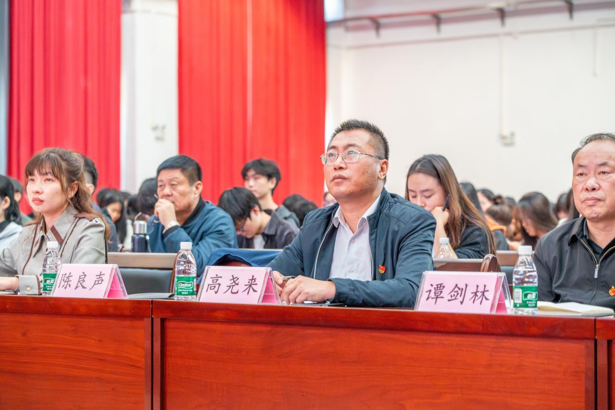 12月4日,學(xué)校黨委書記陳良聲在云浮校區(qū)文體樓報告廳以“弘揚偉大建黨精神,為中國式現(xiàn)代化展現(xiàn)青春作為”為題,為云浮校區(qū)師生作專題報告。云浮校區(qū)黨委、各二級學(xué)院黨支部負(fù)責(zé)人、馬克思主義學(xué)院思政教師及600多名學(xué)生參加。學(xué)校黨委副書記、副校長高堯來同志主持報告會。