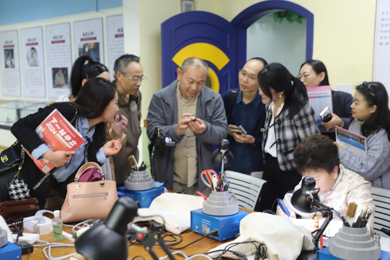 “廣現(xiàn)職院”方面對我校非遺傳承工作在課程建設(shè)、工作室建設(shè)、隊伍建設(shè)、社團建設(shè)、科學(xué)研究和輻射帶動等方面的做法表示贊賞,雙方就如何進一步以學(xué)校的優(yōu)質(zhì)教育資源普惠社會,深入開展“非遺進校園”“非遺進社區(qū)”“文化幫扶”“推普助力鄉(xiāng)村振興”等話題展開充分的交流。并希望通過舉辦交流活動,攜手共進,共同為推普和中華優(yōu)秀傳統(tǒng)文化傳承工作貢獻職教力量。