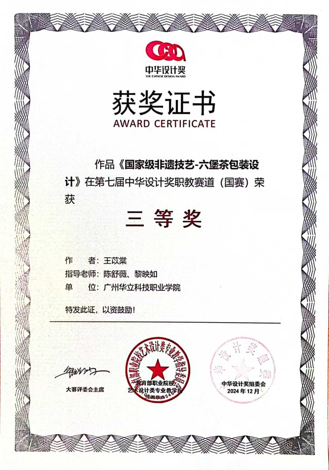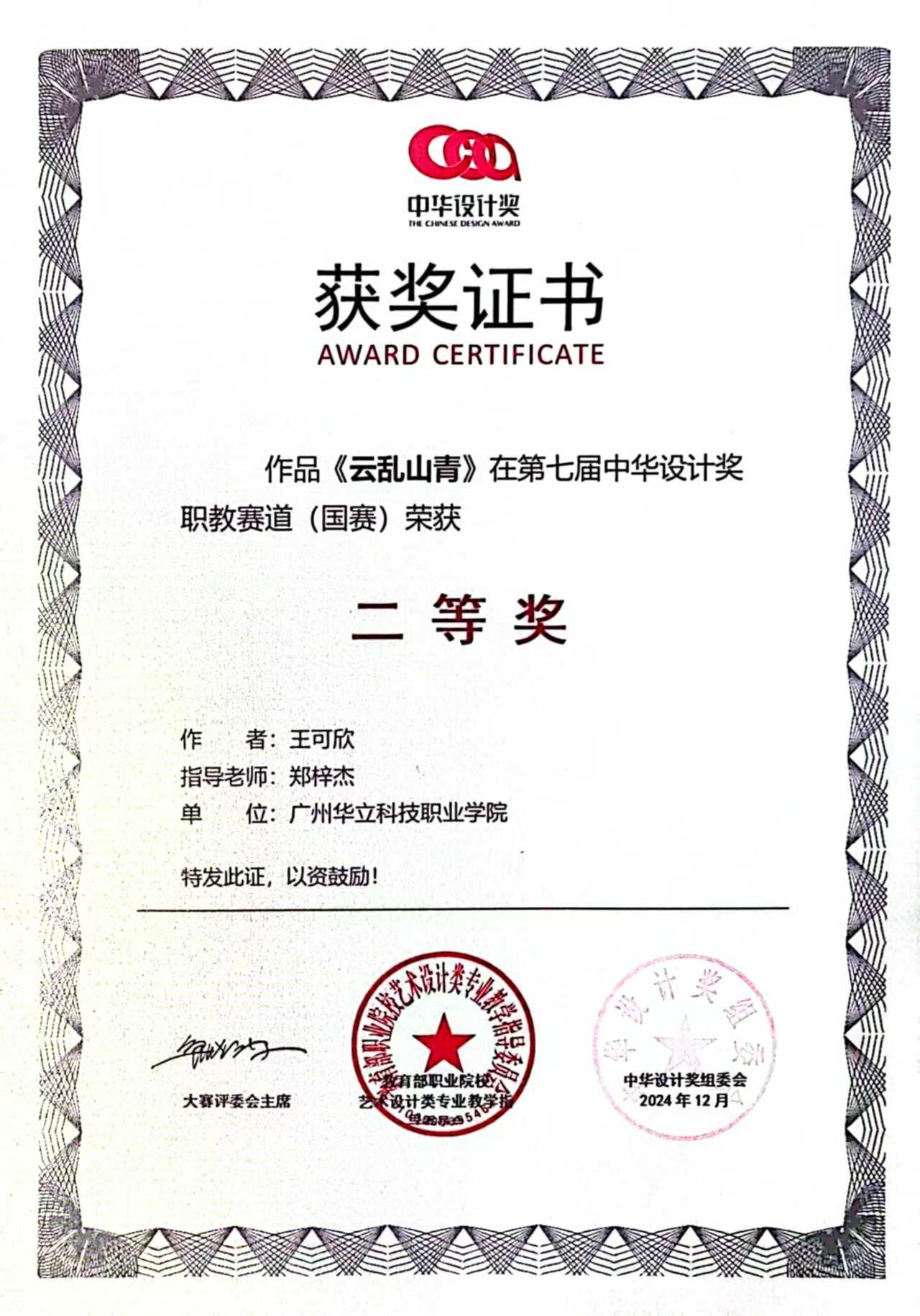 近日,由教育部職業(yè)院校藝術(shù)設(shè)計類專業(yè)教育指導(dǎo)委員會主辦的第七屆中華設(shè)計獎職教賽道(國賽)圓滿落幕。經(jīng)過校賽、省賽、國賽激烈角逐,華立職院藝術(shù)與傳媒學(xué)院在此次大賽中脫穎而出,取得了令人矚目的優(yōu)異成績。其中在本屆中華設(shè)計獎職教賽道(國賽)中斬獲一等獎2項、二等獎2項、三等獎3項。此次獲獎,彰顯了我院在設(shè)計專業(yè)領(lǐng)域的高品質(zhì)教學(xué)水平和實踐教學(xué)成果,進一步深化了產(chǎn)教融合成果轉(zhuǎn)化的綜合育人成效。
