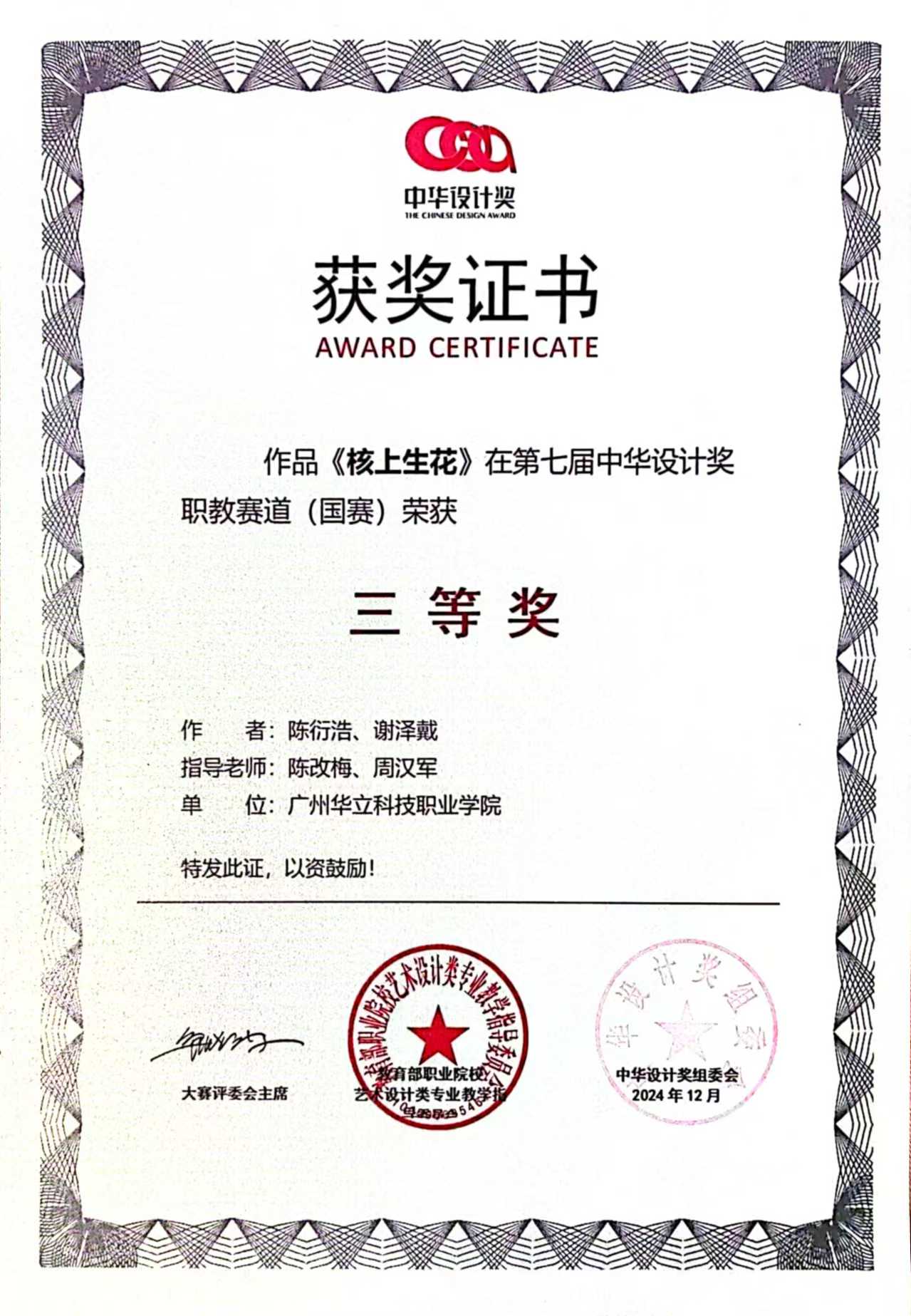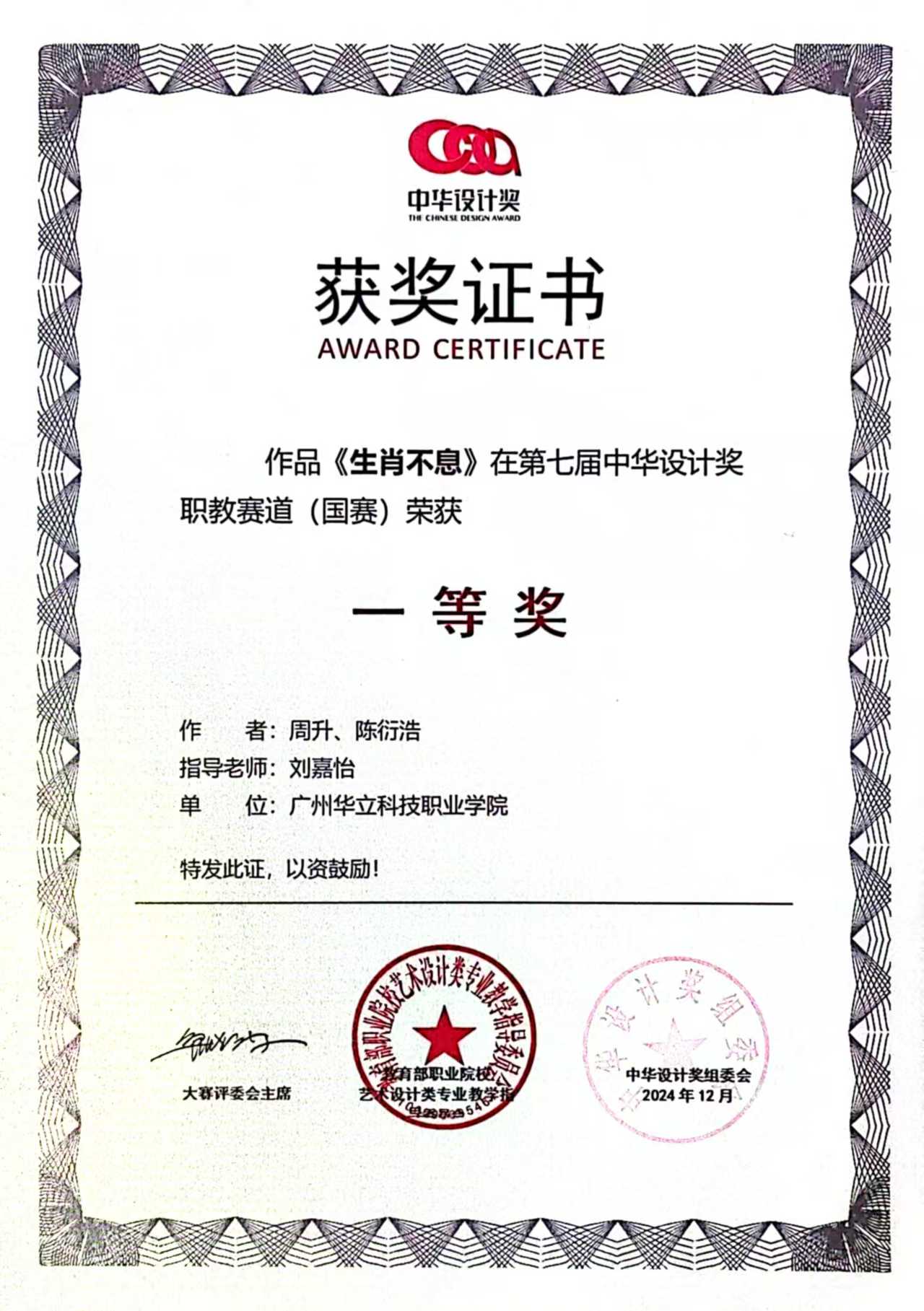 【喜訊】華立職院藝術(shù)與傳媒學(xué)院學(xué)子在第七屆中華設(shè)計獎中斬獲(國賽)一等獎2項、二等獎2項、三等獎3項
