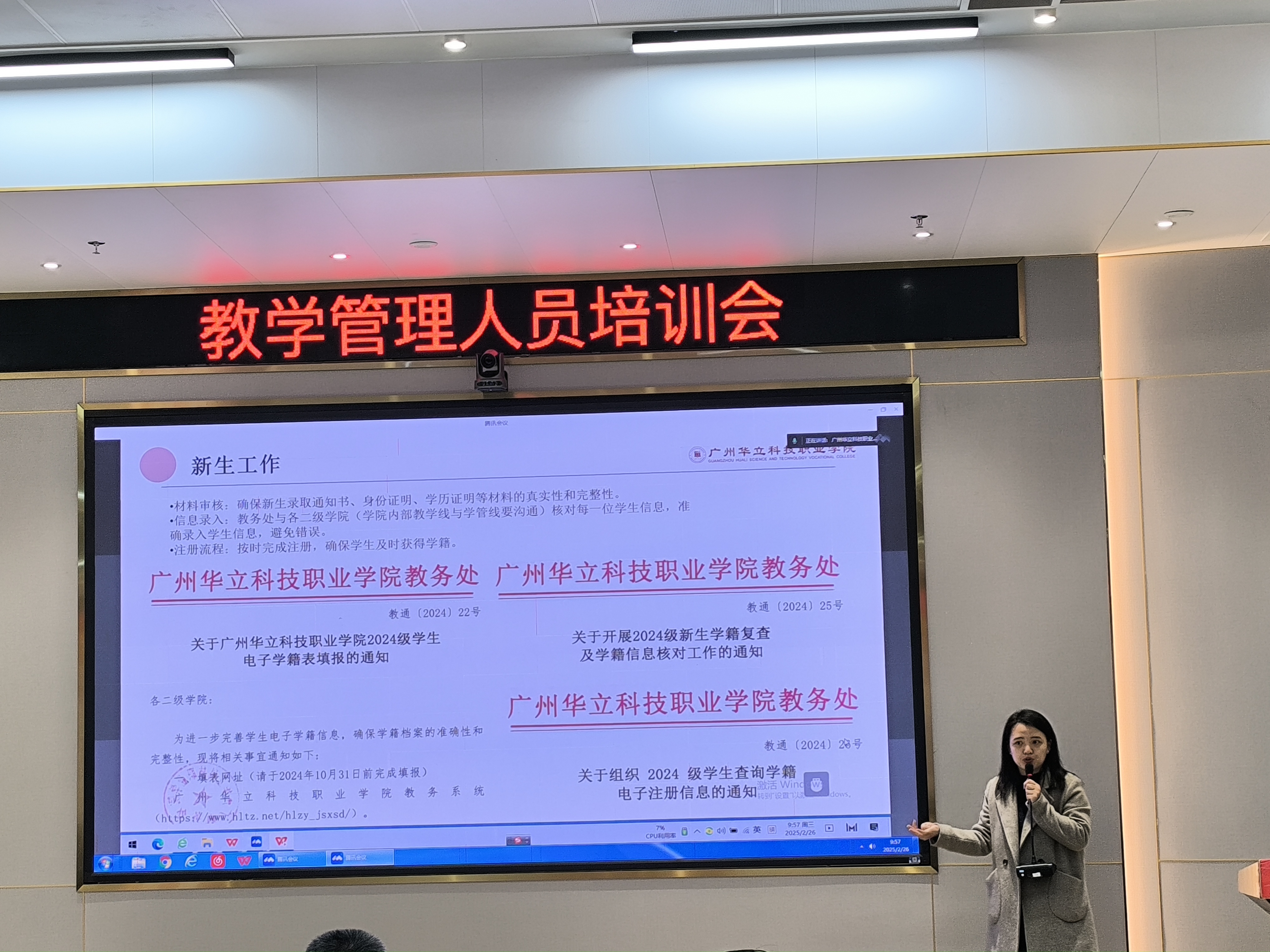 為進(jìn)一步加強(qiáng)教學(xué)管理隊(duì)伍建設(shè)、提高教學(xué)管理人員的政策水平和業(yè)務(wù)水平,2025年2月26日,教務(wù)處組織廣州、云浮兩校區(qū)同步召開教學(xué)管理人員業(yè)務(wù)培訓(xùn)會(huì)。會(huì)議由教務(wù)處副處長(zhǎng)曾英姿主持,兩校區(qū)教學(xué)管理人員約100余人參加培訓(xùn)會(huì)。