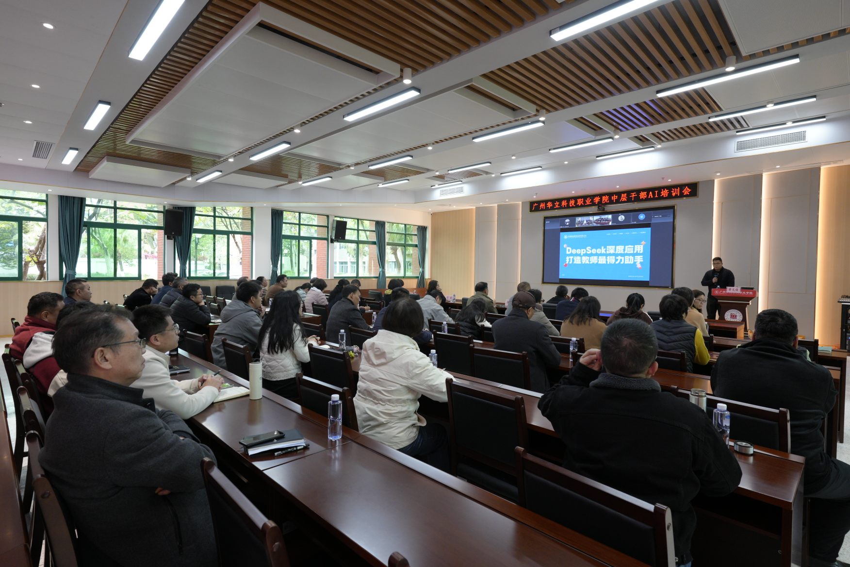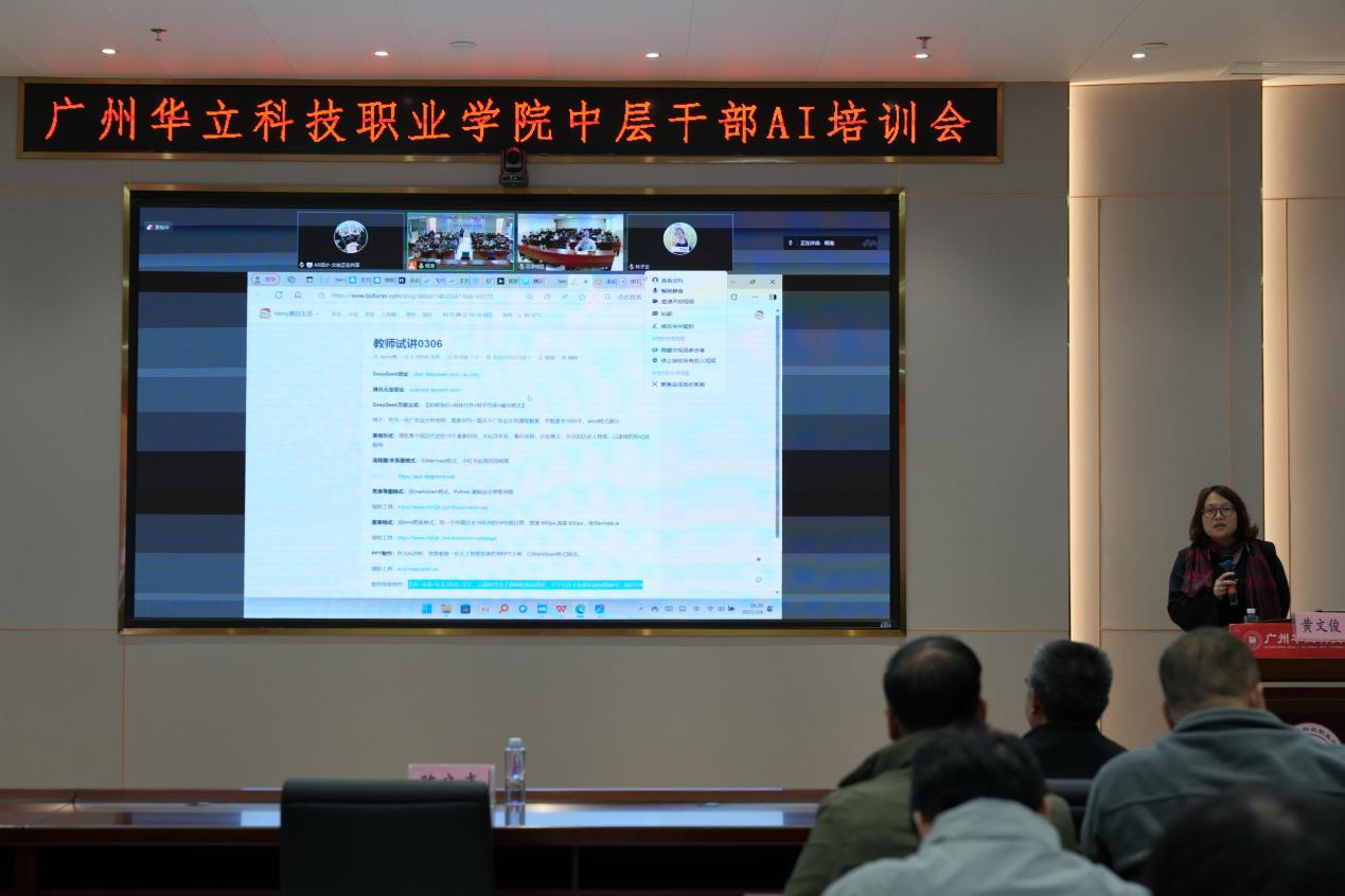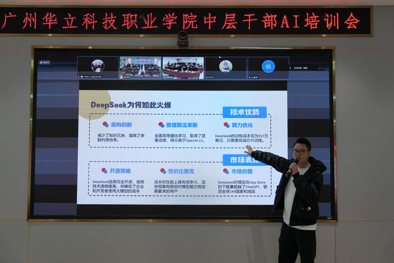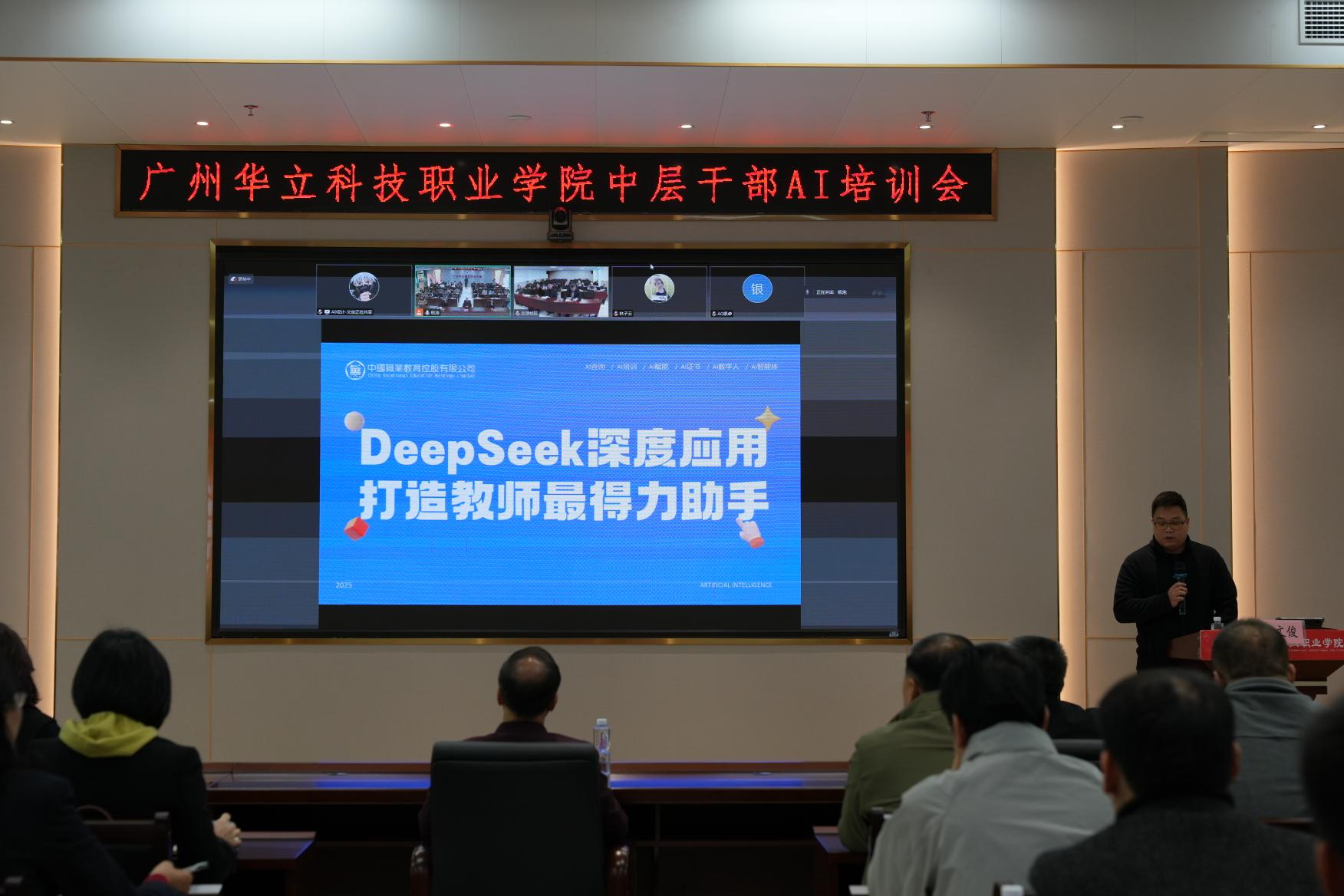 2025年3月6日,為全面貫徹黨的二十大關(guān)于“推動(dòng)教育數(shù)字化發(fā)展”的戰(zhàn)略要求,積極響應(yīng)教育部《教育信息化2.0行動(dòng)計(jì)劃》及《廣東省數(shù)字政府改革建設(shè)“十四五”規(guī)劃》的相關(guān)部署,廣州華立科技職業(yè)學(xué)院在廣州校區(qū)圖書館104組織開展校領(lǐng)導(dǎo)、中層干部“Deepseek深度應(yīng)用打造教師最得力的助手”專題培訓(xùn),云浮校區(qū)以視頻連線參會(huì)。此次培訓(xùn)聚焦人工智能技術(shù)在教育管理場(chǎng)景中的深度應(yīng)用,旨在通過工具實(shí)操與思維革新雙輪驅(qū)動(dòng),全面提升管理隊(duì)伍的數(shù)字素養(yǎng)與創(chuàng)新能力,為學(xué)校高質(zhì)量發(fā)展注入新動(dòng)能。