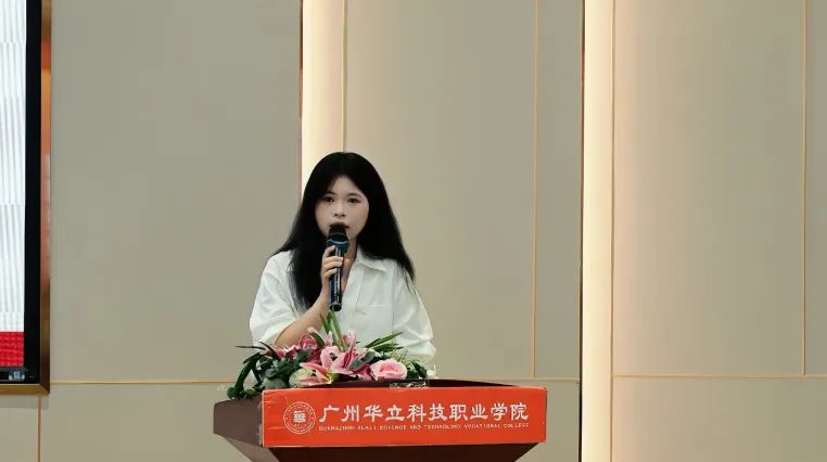 學(xué)生代表陳悅以“技能是信心之源、責(zé)任之基、未來之鑰”為題講述職業(yè)教育的意義。她表示,每一次實(shí)操都是成長的階梯,每一次挑戰(zhàn)都是能力的淬火。她以實(shí)習(xí)經(jīng)歷為引,深情講述從“學(xué)生”到“準(zhǔn)職場人”的蛻變歷程,坦言“一技在手,不只是解決問題的能力,更是走向未來的底氣與勇氣”。
