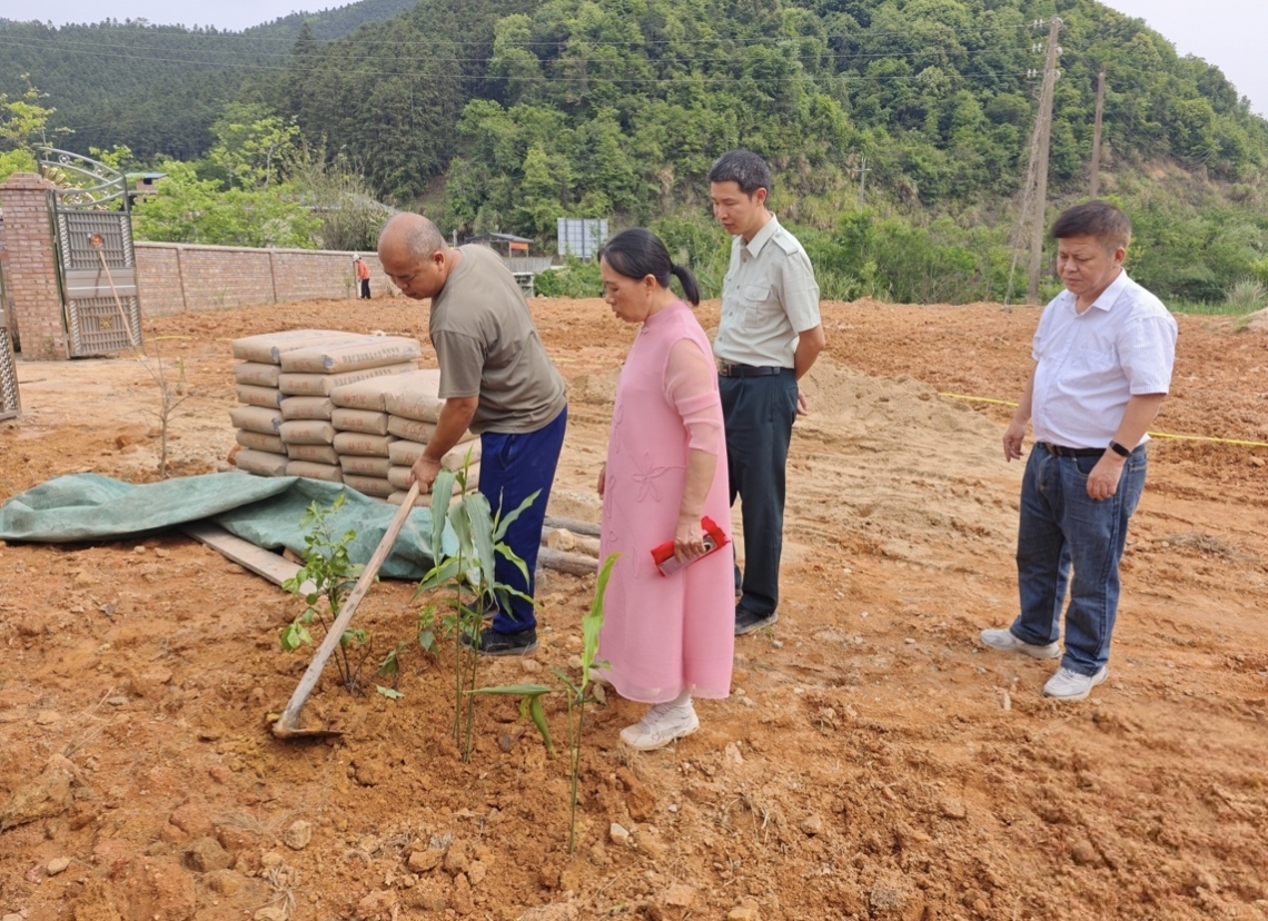 健康學(xué)院農(nóng)村科技特派員團隊查看種苗試種情況