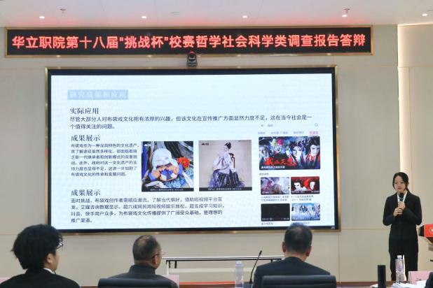 在王繼東、楊瑞光老師共同指導(dǎo)下,陳怡馨、陳芷茵、樊紫清、梁敏嬈同學(xué)完成的《“袖里乾坤大 掌上戲世情”——閩南布袋戲的現(xiàn)代傳承與發(fā)展研究》,立足國家級非物質(zhì)文化遺產(chǎn)保護(hù)的時代課題,聚焦閩南布袋戲這一國家級非遺項(xiàng)目的傳承困境與創(chuàng)新路徑。項(xiàng)目提出以青年創(chuàng)作群體為突破口,通過融合現(xiàn)代審美與數(shù)字技術(shù)激活傳統(tǒng)藝術(shù)生命力的創(chuàng)新路徑。經(jīng)實(shí)踐驗(yàn)證,通過打造沉浸式演出場景、開發(fā)文創(chuàng)衍生品、構(gòu)建新媒體傳播矩陣等實(shí)踐,可有效擴(kuò)大受眾覆蓋范圍。該成果既為破解閩南布袋戲現(xiàn)實(shí)困境提供解決方案,更通過守護(hù)文化根脈、增強(qiáng)文化自信提供現(xiàn)實(shí)路徑,彰顯傳統(tǒng)藝術(shù)與時代同頻共振的傳承價值。