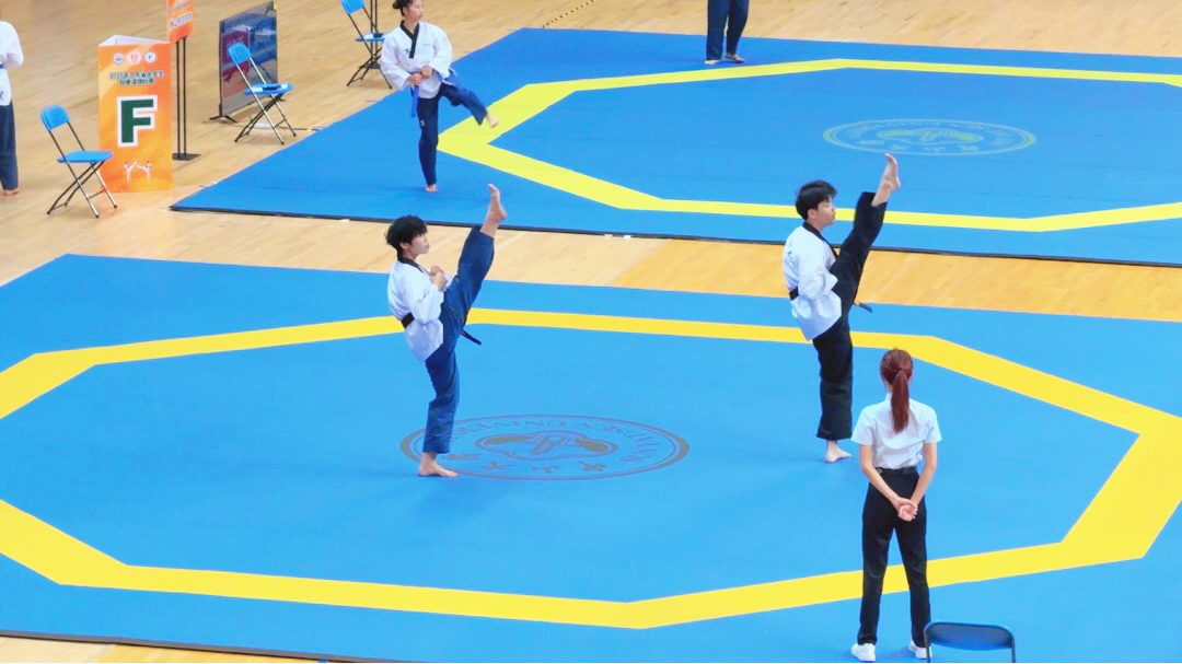 本次賽事由教育學(xué)院曾豪釔老師率隊(duì)在丙組競(jìng)技、品勢(shì)和跆拳道舞三大項(xiàng)目中展開(kāi)激烈角逐。在個(gè)人競(jìng)技比賽上,隊(duì)員們目光如炬、斗志昂揚(yáng),每一次出拳、每一次踢腿都飽含力量與決心,將平日里的刻苦訓(xùn)練化作賽場(chǎng)上的凌厲攻勢(shì)。經(jīng)過(guò)一番龍爭(zhēng)虎斗、激烈交鋒,隊(duì)員們憑借扎實(shí)的功底和頑強(qiáng)的拼搏精神,取得了令人驚嘆的優(yōu)異成績(jī):林文錦、黃曹凡、周志聰三位同學(xué)分別在個(gè)人競(jìng)技男子-63kg、66kg、78kg比賽中摘得金牌;林依曼同學(xué)在個(gè)人競(jìng)技女子-67kg比賽中奪得銀牌;吳藝、張保頤兩位同學(xué)分別在個(gè)人競(jìng)技女子-46kg、62kg中獲得銅牌,同學(xué)們完美彰顯了華立跆拳道隊(duì)的強(qiáng)勁實(shí)力和專(zhuān)業(yè)水準(zhǔn)。