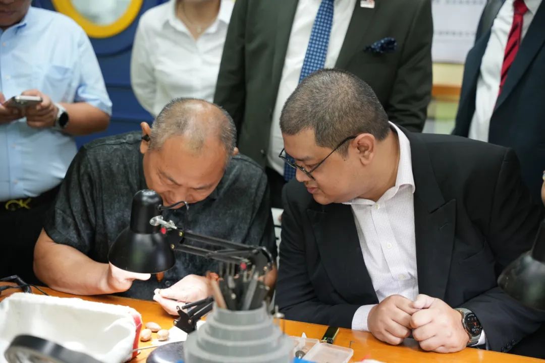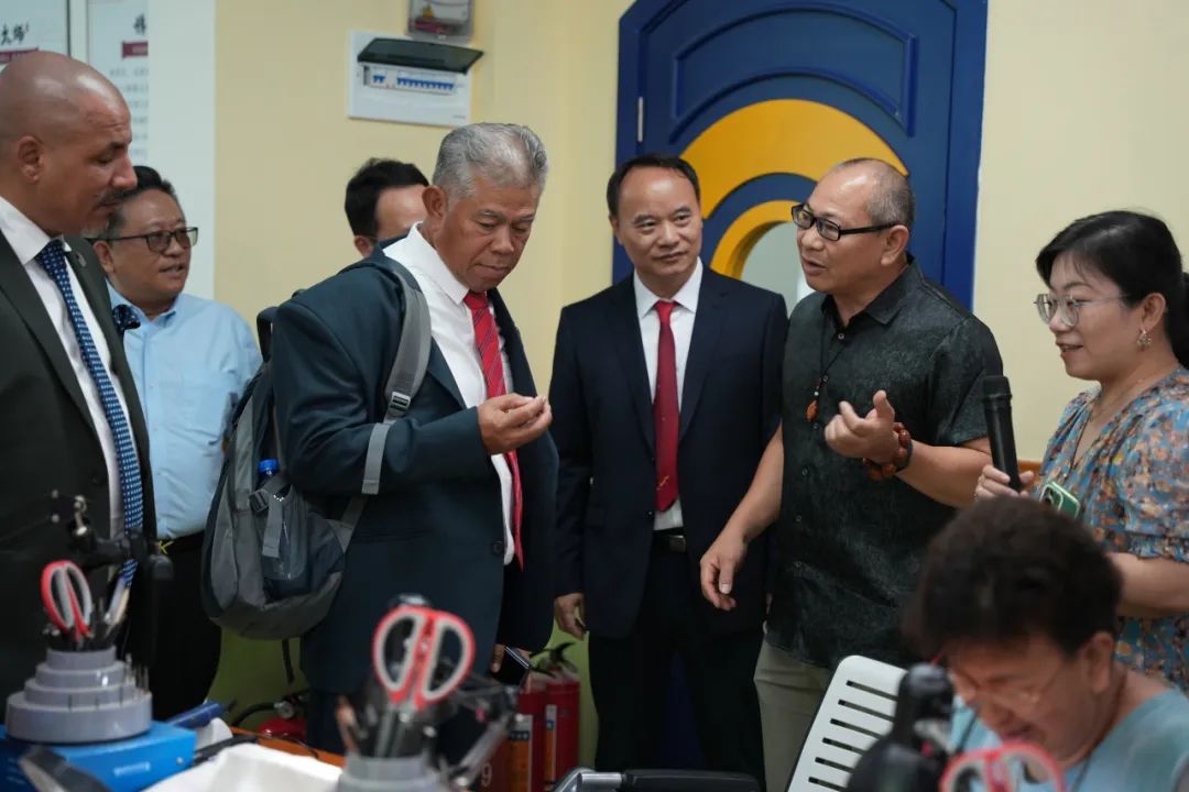 座談會結(jié)束后,學(xué)校領(lǐng)導(dǎo)陪同UPSI與PECSB一行參觀中醫(yī)藥文化館、欖雕工藝大師工作室、人工智能創(chuàng)新中心、校園特色景觀、生活學(xué)院實(shí)訓(xùn)基地。他們對學(xué)校的校園建設(shè)給予了充分的肯定。