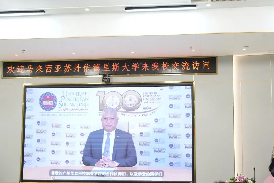 會議伊始,學(xué)校校長廖俊杰致歡迎辭,向遠(yuǎn)道而來的貴賓們表示最熱烈的歡迎和最誠摯的感謝!廖校長在致辭中向與會的嘉賓們簡要介紹了學(xué)校的情況。學(xué)校擁有26年的辦學(xué)歷史,在校生25000余人。學(xué)校設(shè)有10個二級學(xué)院,開設(shè)軟件技術(shù)、人工智能技術(shù)應(yīng)用、大數(shù)據(jù)技術(shù)、新能源汽車技術(shù)以及適應(yīng)人口老齡化,服務(wù)民生工程的健康管理、護(hù)理、康復(fù)治療技術(shù)、電子商務(wù)、中醫(yī)學(xué)等53個專業(yè)。同時(shí),學(xué)校是“全國先進(jìn)辦學(xué)單位”、全國鄉(xiāng)村振興電商人才培養(yǎng)示范基地暨村村播工程示范校、廣東省非物質(zhì)文化遺產(chǎn)傳承基地,獲得了廣泛的社會認(rèn)可。廖校長指出學(xué)校與UPSI大學(xué)和各位從事教育的同仁們交流活動,是積極響應(yīng)“一帶一路”倡議,共謀教育發(fā)展、共育國際化人才的重要實(shí)踐。表示希望我們要以此次交流為契機(jī),攜手并進(jìn),為促進(jìn)中馬教育合作、增進(jìn)兩國友誼作出更大貢獻(xiàn)!