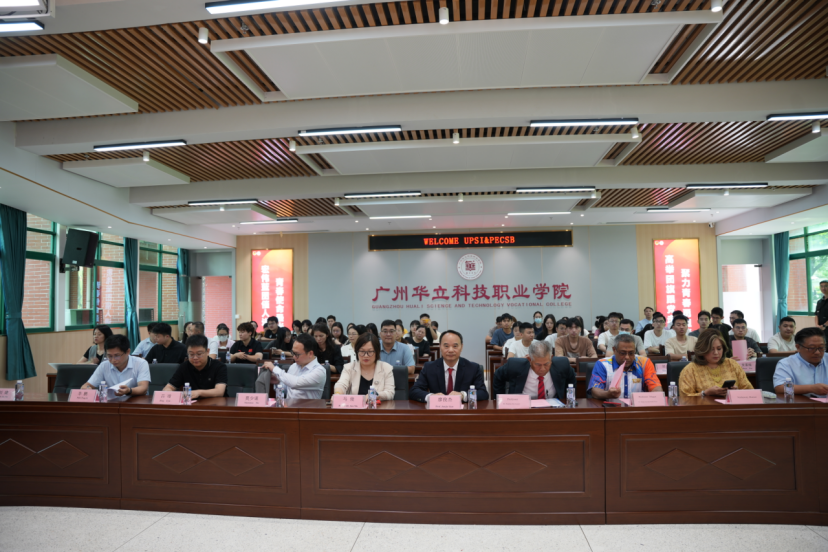 UPSI大學(xué)團(tuán)隊(duì)的國際事務(wù)與高等教育發(fā)展中心(IMAC)主任、校長助理,Professor Dr. Ramlee binIsmail教授、博士,管理與經(jīng)濟(jì)學(xué)院院長、副教授、博士,Profesor Magya Dr. Mohd Asri bin Mohd Noor;PECSB團(tuán)隊(duì)的總經(jīng)理Norhawaty Mansor,營銷總監(jiān)Hosiny Mohamed Hosiny Saad,Dato' Rocky Foo Wei Sze,諾哈瓦蒂女士的私人助理Mohd Asyrani Bin Rosani;廣東江門中醫(yī)藥職業(yè)學(xué)院教務(wù)部助理朱珍佶;岳陽現(xiàn)代服務(wù)職業(yè)學(xué)院繼續(xù)教育學(xué)院辦公室主任鐘森林等高校代表;同時(shí),中國兵器工業(yè)集團(tuán)兵器人才研究院北方至信華南區(qū)業(yè)務(wù)部主任莫少謀、校企合作辦公室副主任杜惠詩、辦公室副主任莫云天,南大安高資本市場研究院國際交流學(xué)院院長朱智勇、副院長廖宇、招生處副主任趙彬、教務(wù)處助理麥嘉瑜、運(yùn)營部助理莫武岸等業(yè)界精英也應(yīng)邀出席;此外,學(xué)校校長廖俊杰、常務(wù)副校長馬俊、校辦主任李鵬、繼續(xù)教育學(xué)院副院長呂靖、團(tuán)委書記張超越、經(jīng)濟(jì)管理學(xué)院院長劉惠玲等領(lǐng)導(dǎo)以及教師代表也悉數(shù)到場。學(xué)校與來自校企7家單位的領(lǐng)導(dǎo)嘉賓共同參加了交流座談會并同時(shí)見證了廣州華立科技職業(yè)學(xué)院優(yōu)學(xué)國際語言中心成立的重要時(shí)刻。