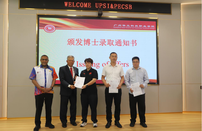 學(xué)校與蘇丹依德里斯教育大學(xué)合作的漢語言文化、教育管理專業(yè)碩博學(xué)歷提升項(xiàng)目,突破了以往的項(xiàng)目壁壘,全面響應(yīng)了國家“一帶一路“職教出海”倡議,也為華立職院的教職工們搭建了良好的國際視野平臺。馬來西亞蘇丹依德里斯教育大學(xué)的領(lǐng)導(dǎo)也為攻讀博士學(xué)歷的教職工代表頒發(fā)了錄取通知書。