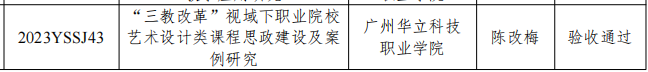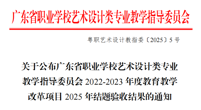 近日,依據(jù)廣東省職業(yè)學(xué)校藝術(shù)設(shè)計類專業(yè)教學(xué)指導(dǎo)委員會發(fā)布的《廣東省職業(yè)學(xué)校藝術(shù)設(shè)計類專業(yè)教學(xué)指導(dǎo)委員會2022-2023年度教育教學(xué)改革項目2025年結(jié)題驗收結(jié)果的通知》(粵職藝術(shù)設(shè)計教指委〔2025〕5號),我校傳來喜訊:由馬俊教授主持的《非遺藝術(shù)價值發(fā)現(xiàn)與服務(wù)大眾相關(guān)問題研究——以廣州欖雕為例》(項目編號:2022YSSJ65)、吳韻怡副教授主持的《數(shù)字化技術(shù)對高職藝術(shù)類專業(yè)學(xué)生在線學(xué)習(xí)效果的影響》(項目編號:2022YSSJ16)、黎映如副教授主持的《基于1+X證書制度的藝術(shù)設(shè)計專業(yè)“崗課賽證”融通的實踐探索》(項目編號:2022YSSJ72)、陳改梅副教授主持的《“三教改革”視域下職業(yè)院校藝術(shù)設(shè)計類課程思政建設(shè)及案例研究》(項目編號:2023YSSJ43)、鄭黎明副教授主持的《3D打印技術(shù)融入三維動畫設(shè)計課程教學(xué)應(yīng)用研究》(項目編號:2023YSSJ44)、宋依謎副教授主持的《鄉(xiāng)村振興背景下農(nóng)業(yè)與地方文化融合的農(nóng)產(chǎn)品包裝設(shè)計研究》(項目編號:2023YSSJ45)、馬英超副教授主持的《新媒體語境下高職院?!胺沁z”技藝教學(xué)融入社會服務(wù)的實踐研究》(項目編號:2023YSSJ46)這7項教育教學(xué)改革項目均圓滿通過結(jié)題驗收。廣州華立科技職業(yè)學(xué)院在此次教改浪潮中斬獲豐碩成果,在數(shù)字化教學(xué)、非遺傳承、產(chǎn)教融合等多個關(guān)鍵領(lǐng)域交出了一份令人眼前一亮的創(chuàng)新答卷,為藝術(shù)設(shè)計類職業(yè)教育的高質(zhì)量發(fā)展注入了源源不斷的強勁動力。