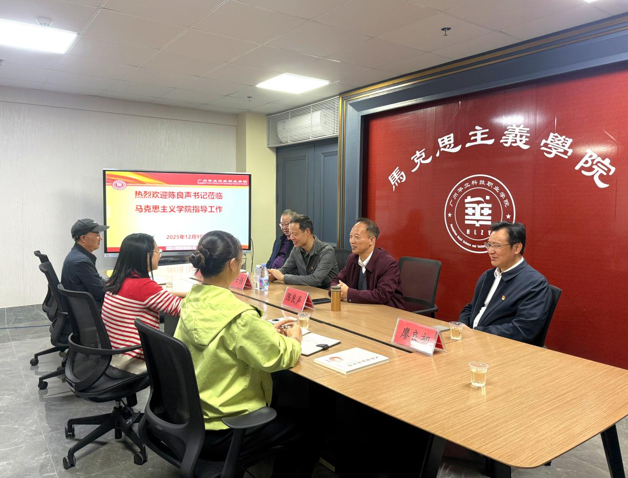 2025年12月9日,學(xué)校黨委書記陳良聲與結(jié)對共建單位廣東機(jī)電職業(yè)技術(shù)學(xué)院思政課教學(xué)專家季士強(qiáng)博士一行,蒞臨馬克思主義學(xué)院調(diào)研指導(dǎo)工作。學(xué)校黨委辦公室主任梁德君、校黨委組織部副部長陳曉薇、馬克思主義學(xué)院院長廖良初、副院長伍揆祁、院長助理唐濤等參加。會議由廖良初院長主持。