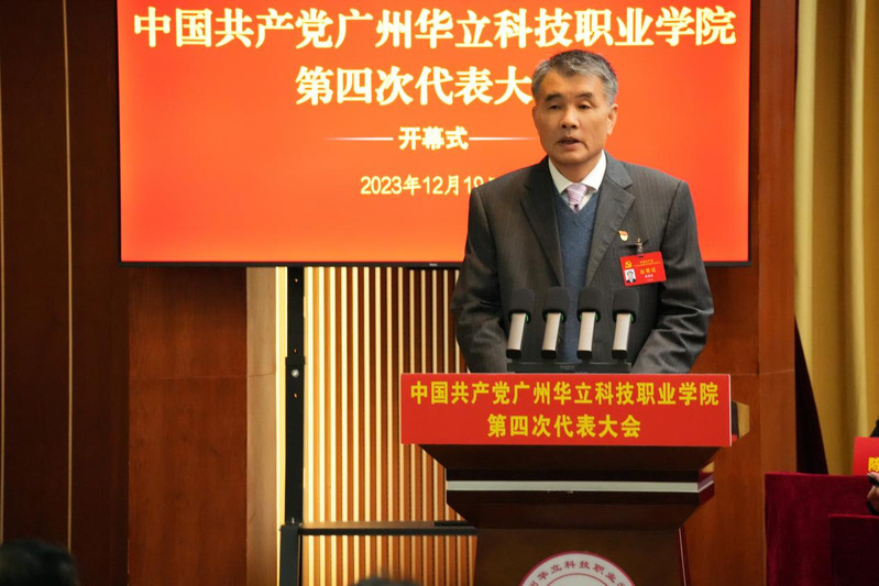 征程萬里闊,奮進正當時。12月19日上午,中國共產黨廣州華立科技職業(yè)學院第四次代表大會在東區(qū)圖書館一號報告廳隆重開幕。廣東省委教育工委、云浮市委教育工委、廣東工業(yè)大學、廣州科技職業(yè)技術大學、廣東輕工職業(yè)技術學院、廣州城建職業(yè)學院、云浮市檔案館、北汽(廣州)汽車有限公司等28家單位向大會發(fā)來了賀信。董事會領導、正式代表、列席代表共139人參加黨代會開幕式。開幕式由校長陳德清教授主持,常務副校長馬俊宣讀了廣東省委教育工委的賀信,學校黨委書記陳良聲代表中共廣州華立科技職業(yè)學院第三屆委員會做工作報告。