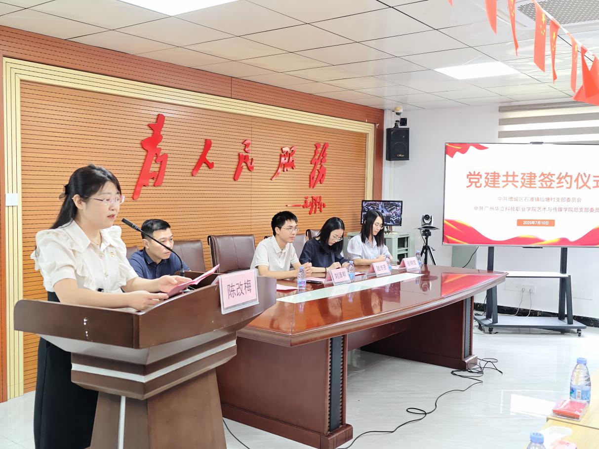 為深入貫徹習(xí)近平新時代中國特色社會主義思想,推動基層黨建工作提質(zhì)增效,2025年7月10日上午,藝術(shù)與傳媒學(xué)院黨總支與增城仙塘村黨支部在仙塘村村委會議室舉行黨建共建結(jié)對儀式。藝術(shù)與傳媒學(xué)院黨總支領(lǐng)導(dǎo)班子、石灘鎮(zhèn)副鎮(zhèn)長劉澤幫等仙塘村代表出席儀式,此次共建活動由藝術(shù)與傳媒學(xué)院黨總支書記陳改梅主持。