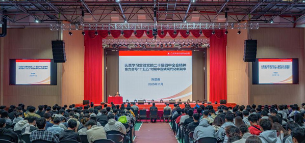 為深入學(xué)習(xí)貫徹黨的二十屆四中全會(huì)精神,引導(dǎo)廣大師生準(zhǔn)確把握“十五五”時(shí)期國家發(fā)展戰(zhàn)略與計(jì)算機(jī)學(xué)科的使命關(guān)聯(lián),2025年11月18日下午,學(xué)校副校長陳顯強(qiáng)教授在云浮校區(qū)文體樓8樓為計(jì)算機(jī)信息工程學(xué)院400余名師生代表帶來一場題為《認(rèn)真學(xué)習(xí)貫徹黨的二十屆四中全會(huì)精神,奮力譜寫“十五五”時(shí)期中國式現(xiàn)代化新篇章》的“思政第一課”。